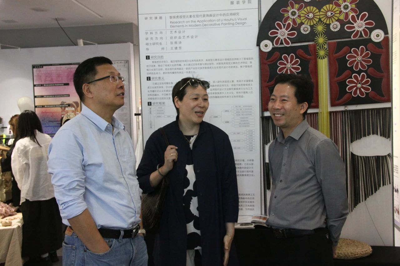 静态展开幕伊始,教育部巡视办一行在临平区委组织部相关领导、区经科局、区教育局相关负责人的陪同下,走访调研了服装学院毕业设计静态展各展区作品,对学院人才培养成果表示高度肯定;服装学院党委书记熊杰、服装学院院长崔荣荣、副院长冯荟、党委副书记胡永青等领导与毕设团队师生进行深度交流,听取了毕业生们对毕业作品的解读。