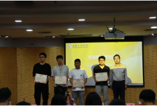 杨博宣布2024年度学院学风建设年正式启动。他和王欢欢、虞雅伦,先后为校友导师、学院学习互助中心讲师和考研小导师颁发聘书,感谢优秀校友和同学们在学院优良学风建设过程中的无私奉献。