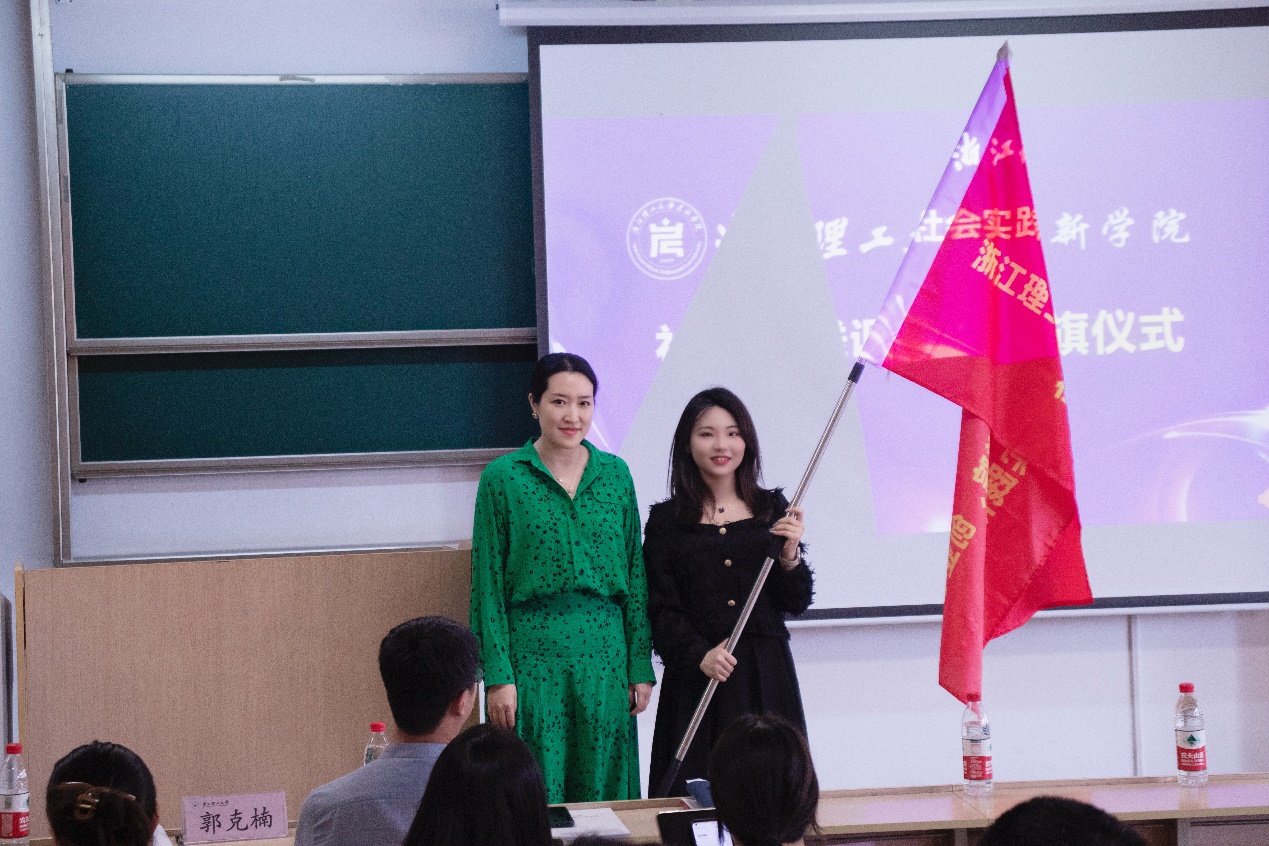 随后,举行了学院2024年度社会实践出征仪式,学院团委书记郭克楠对2024年度社会实践活动的目的、意义及工作安排进行了简要介绍。吕媛媛为实践队伍授旗。
