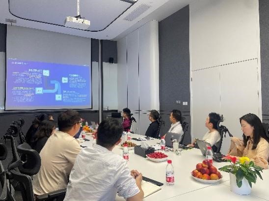 服工系主任顾冰菲学科专业、人才培养、科学研究、师资队伍、资源平台、社会服务和国际交流等方面介绍了服装学院的相关情况及在产教融合等方面的优势。犀牛智造王宗敏就犀牛智造的产业化发展、新科技新技术应用、未来发展规划进行了相关介绍,犀牛智造商品力中心负责人张帅认为服装学院服工系课程贴近生产实际,与数字化、智能化生产紧密关联,很好的体现了产教融合。相关负责人并就下一步人才培养模式、课程实践安排及项目合作模式展开相关研讨。