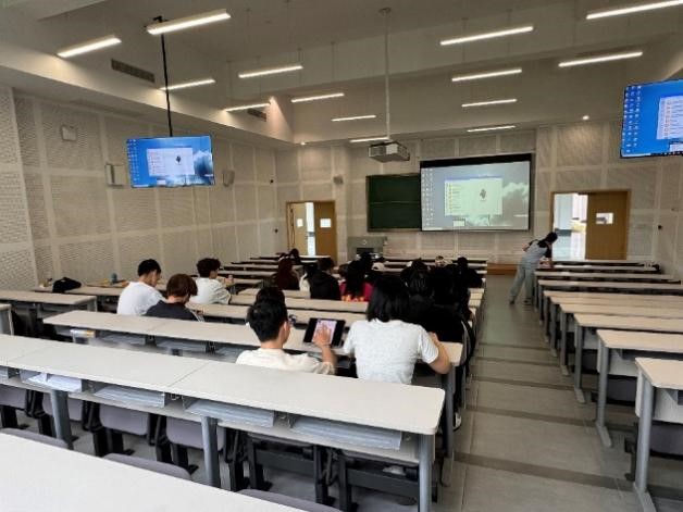 最后,负责人详细介绍了企业的统筹管理模式和销售管理,着重强调了细节处的管理和员工态度对于企业发展的重要性。在部分同学线下参观的同时,其余同学也在教室内观看直播线上参观、同步学习。