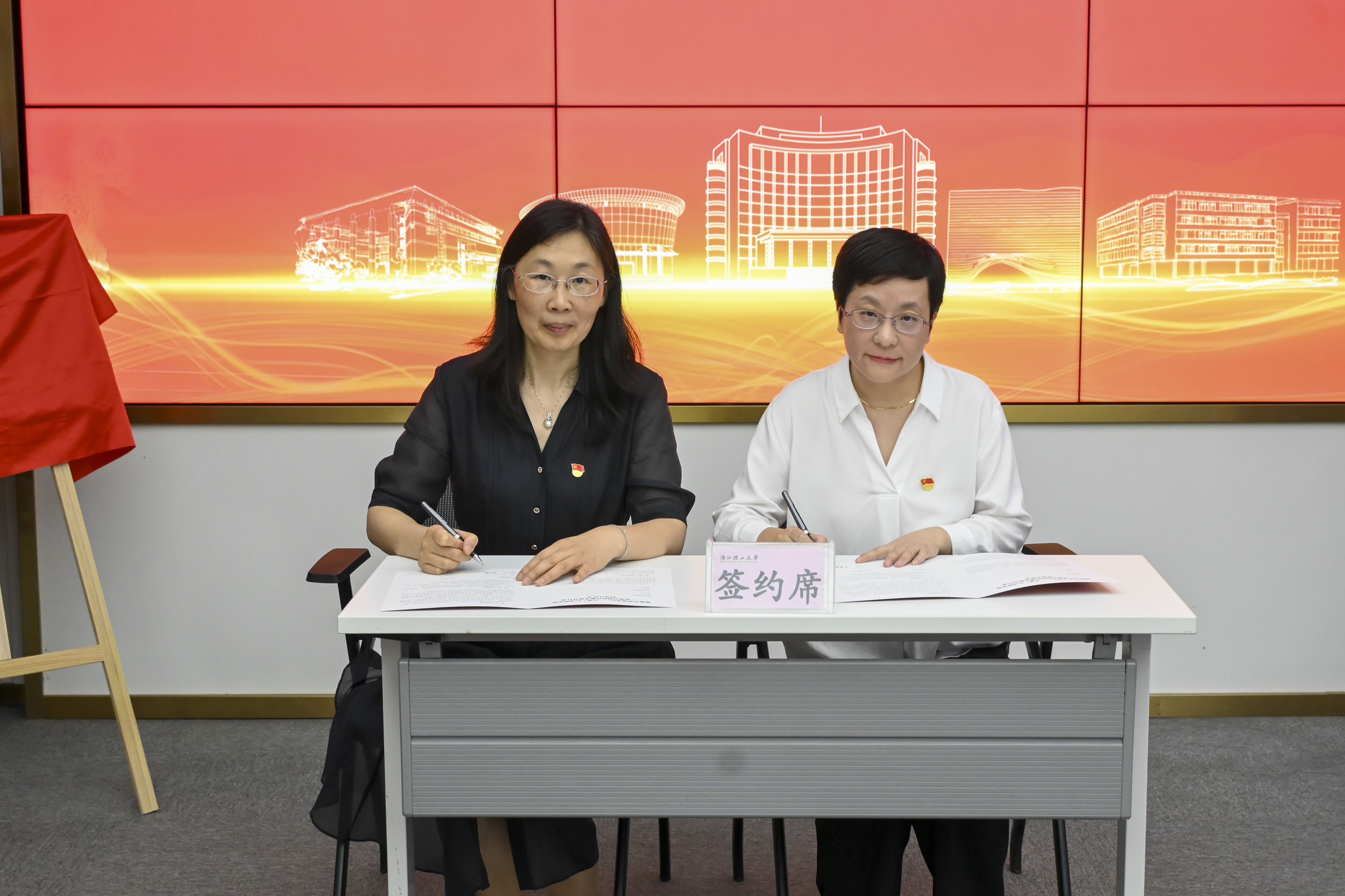 仰滢与王家铃共同签订《党建联建合作协议》,并共同为党建共同体揭牌。