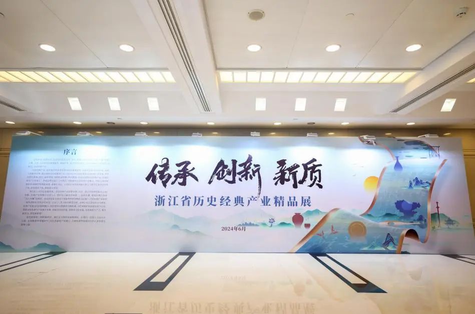 6月11日-12日,2024浙江省历史经典产业精品展在浙江省人民大会堂展出,本次精品展由省经信厅和省文投集团共同策划主办,以“传承、创新、新质”为主题,展出浙江主要历史经典产业的匠作、精品、爆款,同时梳理了全省历史经典产业地图,突出产业发展的蓬勃生命力。