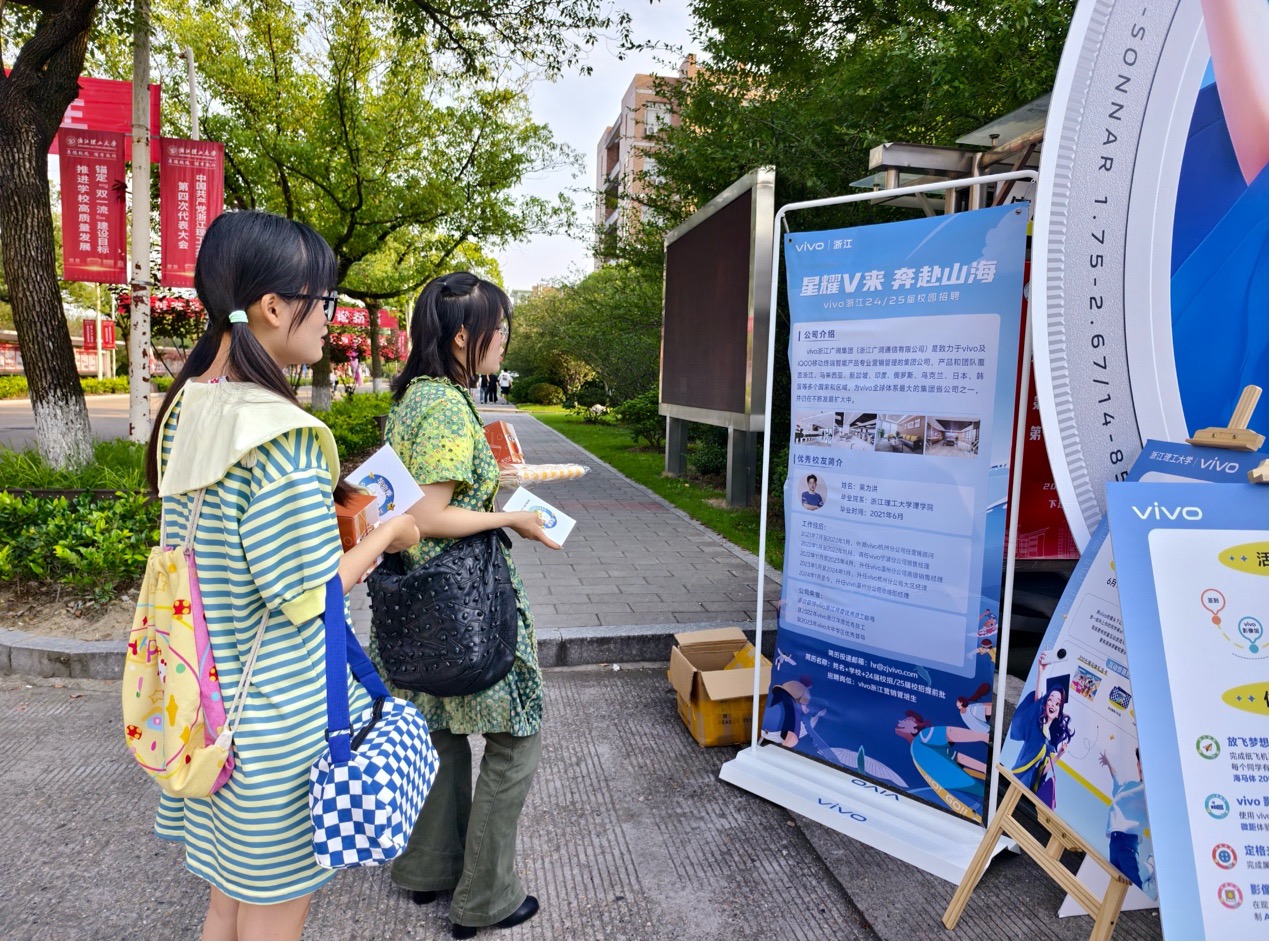 “星耀V来,奔赴山海”,VIVO浙江在活动现场开设校园招聘通道,面向24、25届浙理学子开放管培生等校招岗位。同学们驻足现场了解相关就业信息,并投递简历参与校园招聘活动。理学院21届毕业生吴为洪目前就职于VIVO浙江,担任温州分公司市场部经理一职,工作期间曾多次荣获年度优秀员工等荣誉,吴为洪的故事激励着在场的每一位同学,他以亲身经历展现浙理学子从校园到职场的成功蜕变。