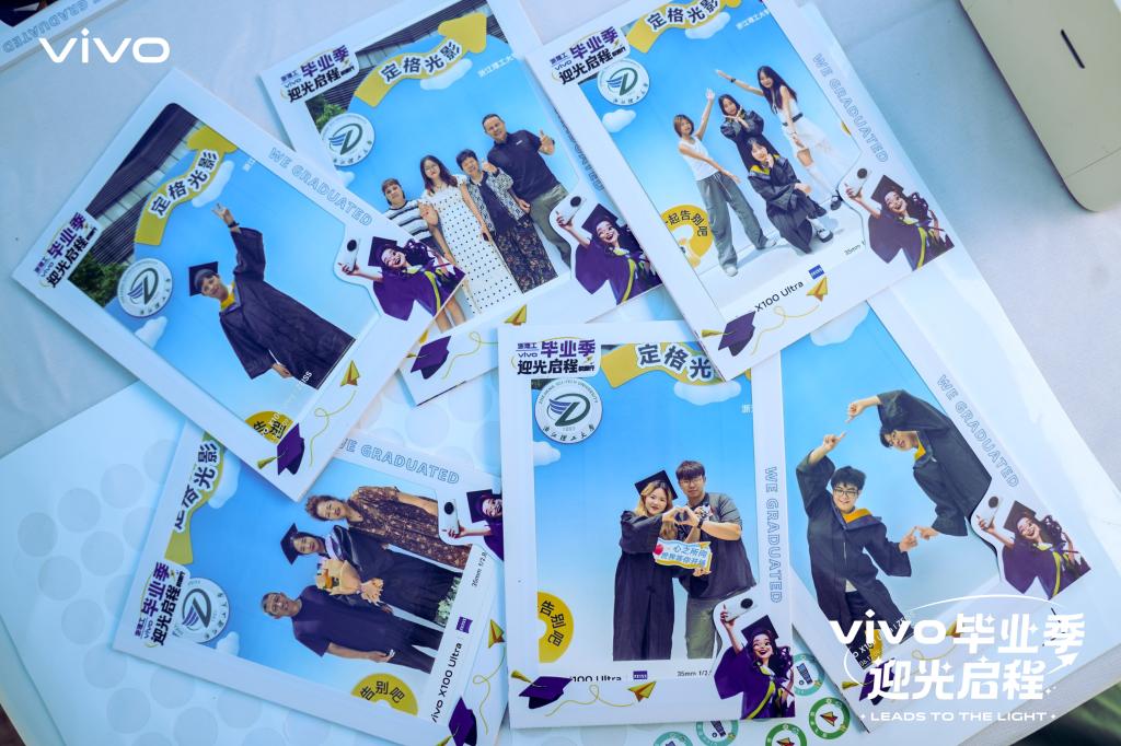 “迎光启程,定格光影”,活动现场特别设置的拍照打卡区域,通过为毕业学子拍摄毕业人像纪念照并进行打印,浙理学子们拥有了专属的毕业留念影像,与父母共庆毕业、与好友拥抱告别、穿上“中国风”学士服冲未来“比了个耶”,一张张纪念照定格下毕业生们独一无二的青春回忆。