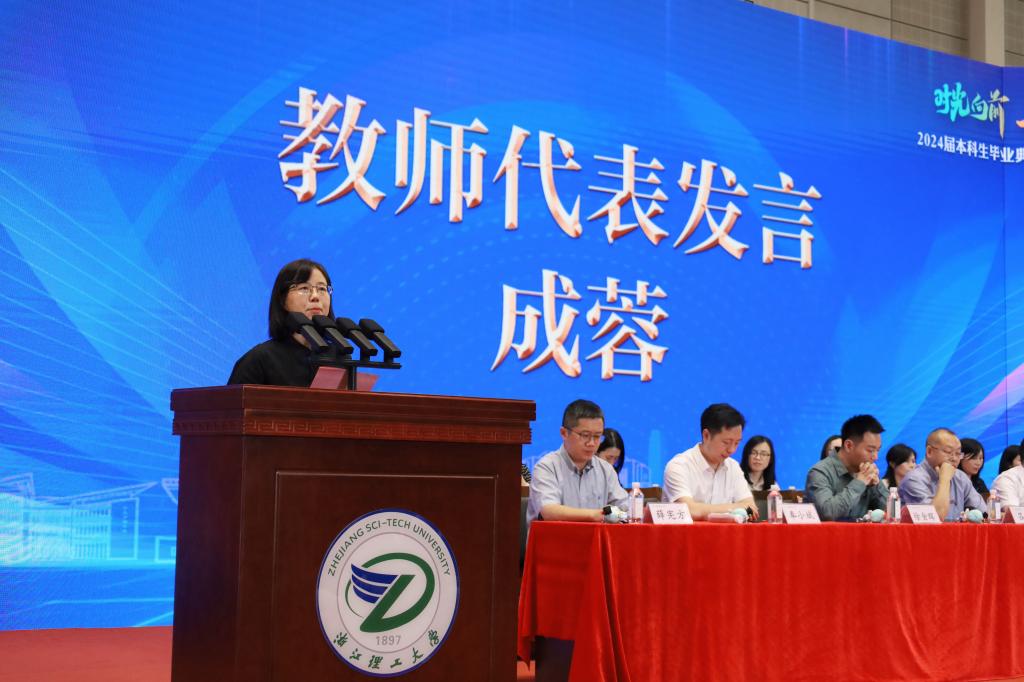2024届校友联络会副会长于威武在毕业典礼上发言。他感谢学校和老师的培养,表示将和校友们一起建好校友会,助力校友和学院的发展。2020级应用物理学1班尹粒羽作为毕业生代表发言。她回顾了在浙理四年的成长故事,对学校、学院及老师们表达了最真诚的感谢,并真挚祝福学校和学院未来更加辉煌。