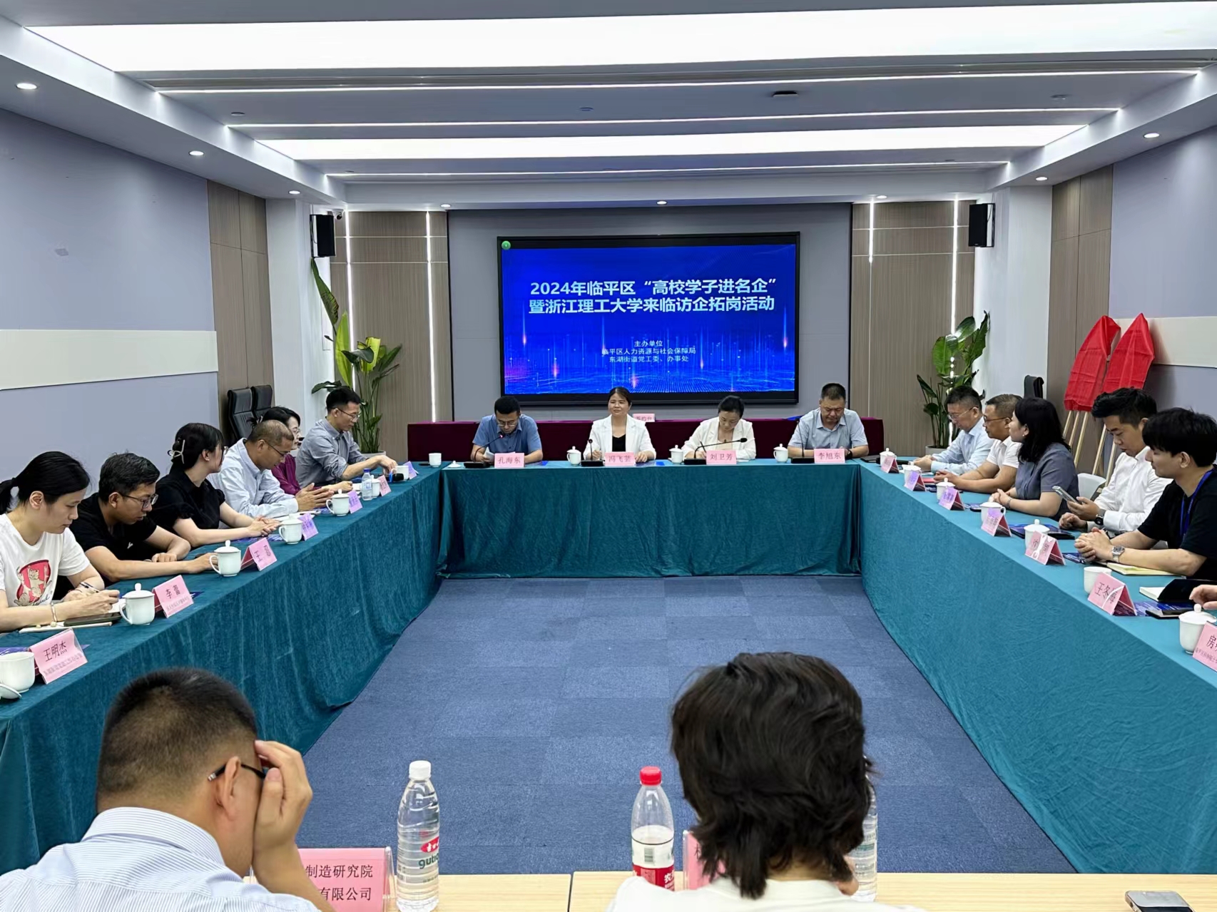 为抢抓毕业生离校就业黄金期,加强校、企、地协同联动,促进浙理学子更高质量就业,6月26日上午,浙江理工大学党委研工部组织60余名师生赴临平区东湖街道开展“名企扬帆”访企拓岗实践活动。我校党委研工部部长冯飞芸,临平区人力资源和社会保障局党委副书记、副局长刘卫芳,临平区科学技术协会副主席李旭东,我校材料科学与工程学院党委副书记周照东,浙江华江科技股份有限公司总经理周明海等出席活动。活动由临平区东湖街道党工委委员孔海东主持。