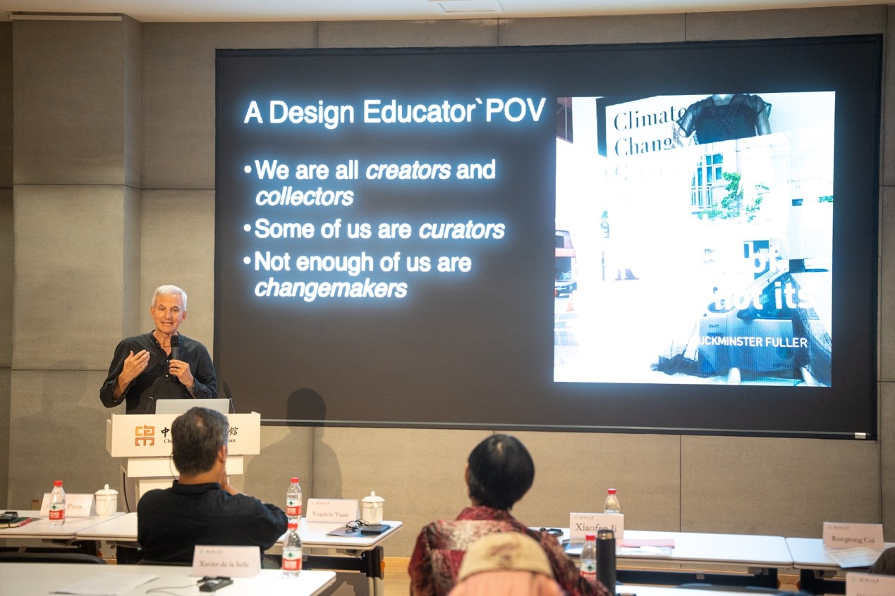 袁由敏院长多年从事设计教育研究、设计社会美育研究和设计社会实践研究,致力于将东方传统智慧融入当代设计实践,积极推动设计教育的变革转型,努力践行设计的社会美育。他的演讲“策展作为社会美育”通过多个策展和个人设计案例深入探讨了设计策展作为美育的重要手段,通过博物馆和展览实践促进公众对历史、文化和日常生活的深入理解,同时强调了策展人在塑造社会美育和历史叙事中的关键角色。