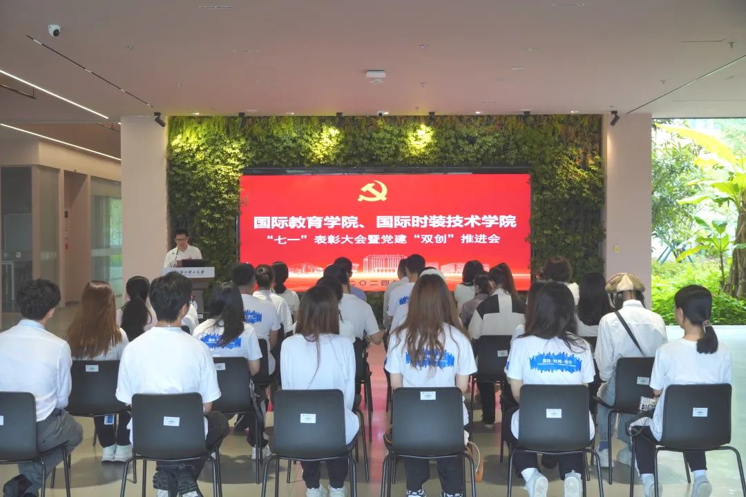 为庆祝中国共产党成立103周年,扎实推动党纪学习教育走深走实,6月26日,国际教育学院、国际时装技术学院、马兰戈尼时尚设计学院在7号楼大厅召开“七一”表彰大会暨党建“双创”推进会。学院党政领导班子、师生党员代表参加了活动。