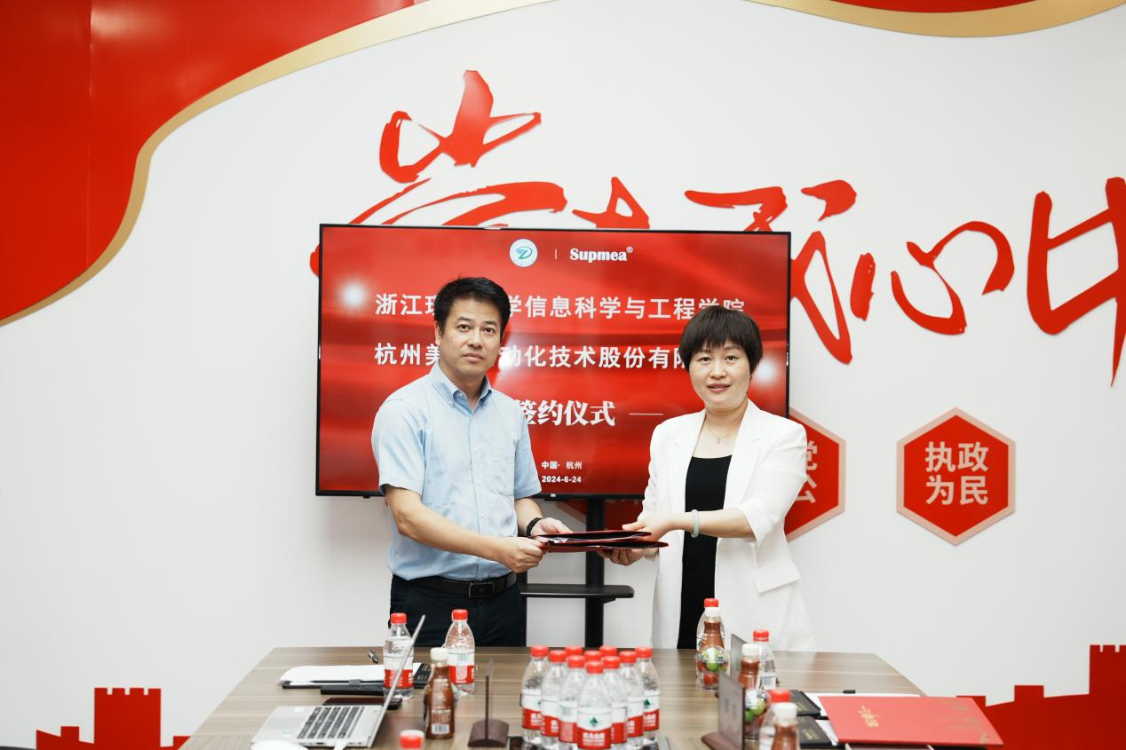 为进一步发挥党建引领作用,推进校企深度融合,促进党建工作与教学科研相结合,实现优势互补、资源共享、共同发展的目标,测控技术与仪器系教工党支部书记郭亮与杭州美仪自动化技术股份有限公司党支部书记张向东签订了《党建共建协议书》,标志着双方党支部正式建立共建关系,共同开启党建合作新篇章。
