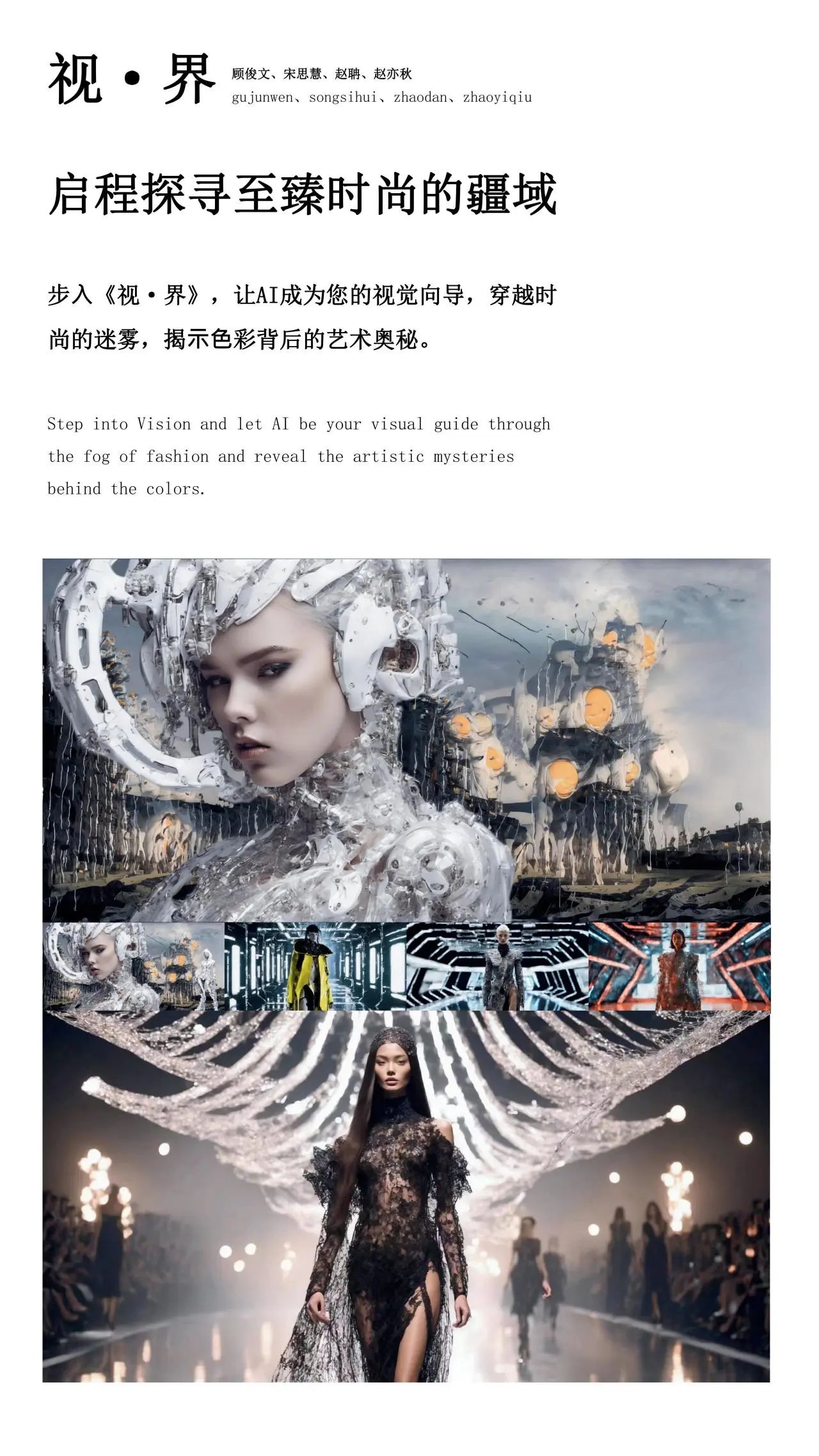 本次教育联展是浙江理工大学服装学院“数智时尚设计”微专业继(杭州临平)艺尚小镇课程汇报展、(北京)中国国际大学生时装周2024中国高校时尚教育成果展之后又一次集中展示。以《智能设计与创意生成》课程为代表,基于阿里云PAI ArtLab一站式AIGC设计平台,学习了解智能设计的特点和设计生成的过程,思考人工智能技术为时尚产业带来的变革。展览选取了《宋瓷·新韵》《视·界》《梦启界域·叠印的自我》三组优秀设计作品,通过素材收集、数据打标、Lora训练、生成应用等工作流,拓展设计的边界与维度。