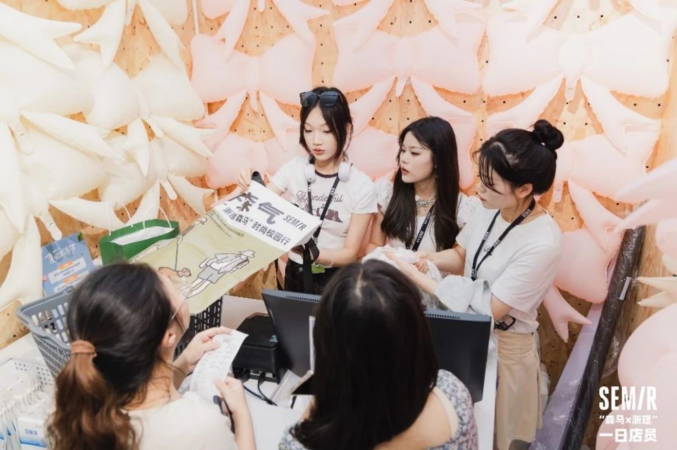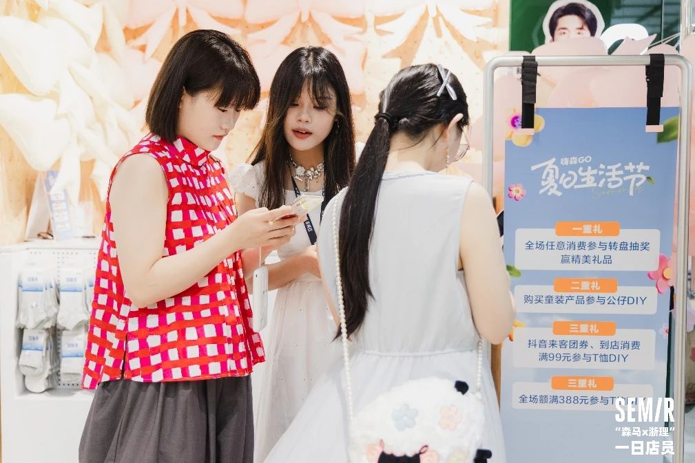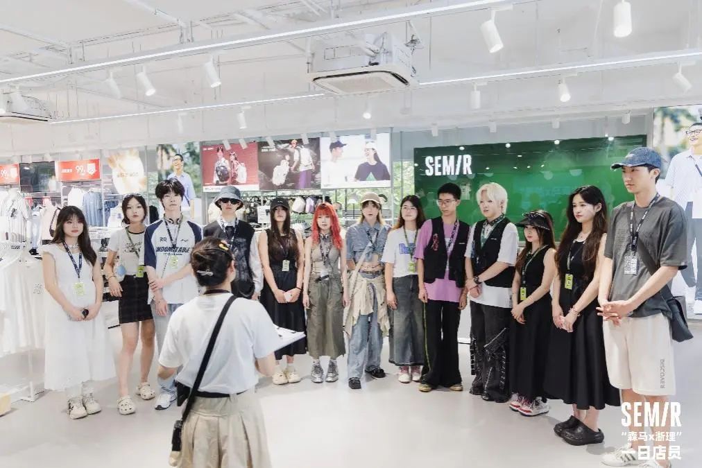 6月29日,“浙理×森马”一日店员活动在杭州工联CC森马总店顺利举办。服装学院服装与服饰设计专业的同学们化身为时尚体验官、造型顾问、穿搭达人等角色,结合专业视角与客户直接交流,直达消费者共鸣。他们不仅展现了新生代的时尚活力与创造力,更通过洞察市场需求,从消费者分析、品牌研究、产品设计、陈列展示、场景化等多维度进行深入思考,以实践方式深化产教融合核心价值的塑造。