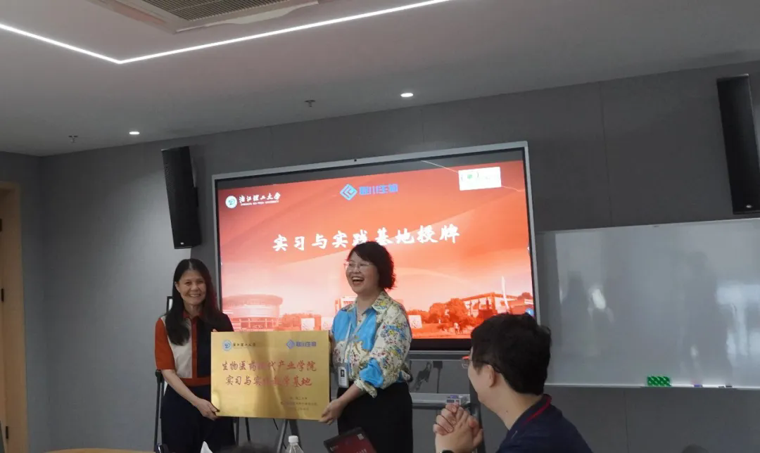 在热烈的掌声中,双方领导共同为实习与实践基地进行了授牌仪式。这一举措标志着浙江理工大学与杭州联川生物技术股份有限公司在人才培养、科研合作等方面迈出了坚实的一步。未来,双方将共同建设实习与实践基地,为学员们提供更多实践机会和优质资源。