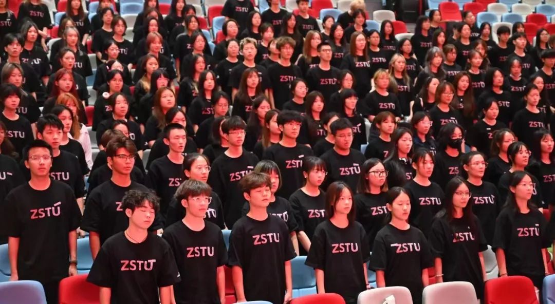 开学典礼在全体合唱的国歌声中拉开帷幕。