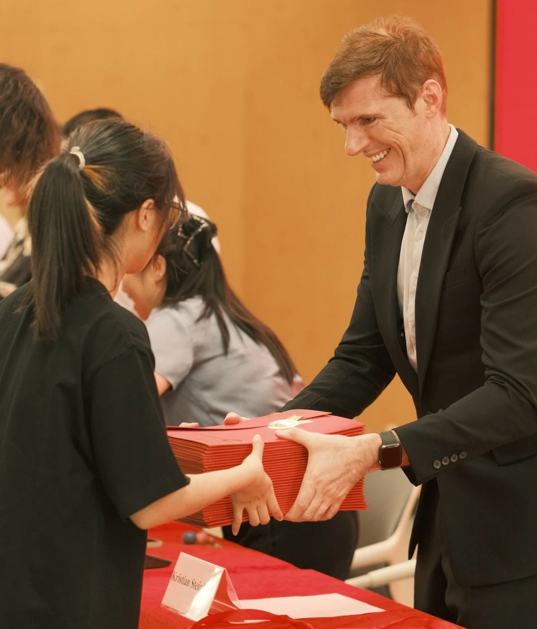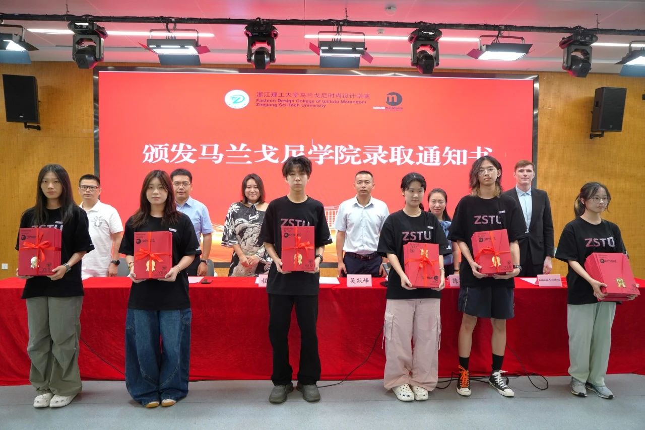 中外双方领导为新生颁发由浙江理工大学和马兰戈尼学院共同签发的录取通知书。