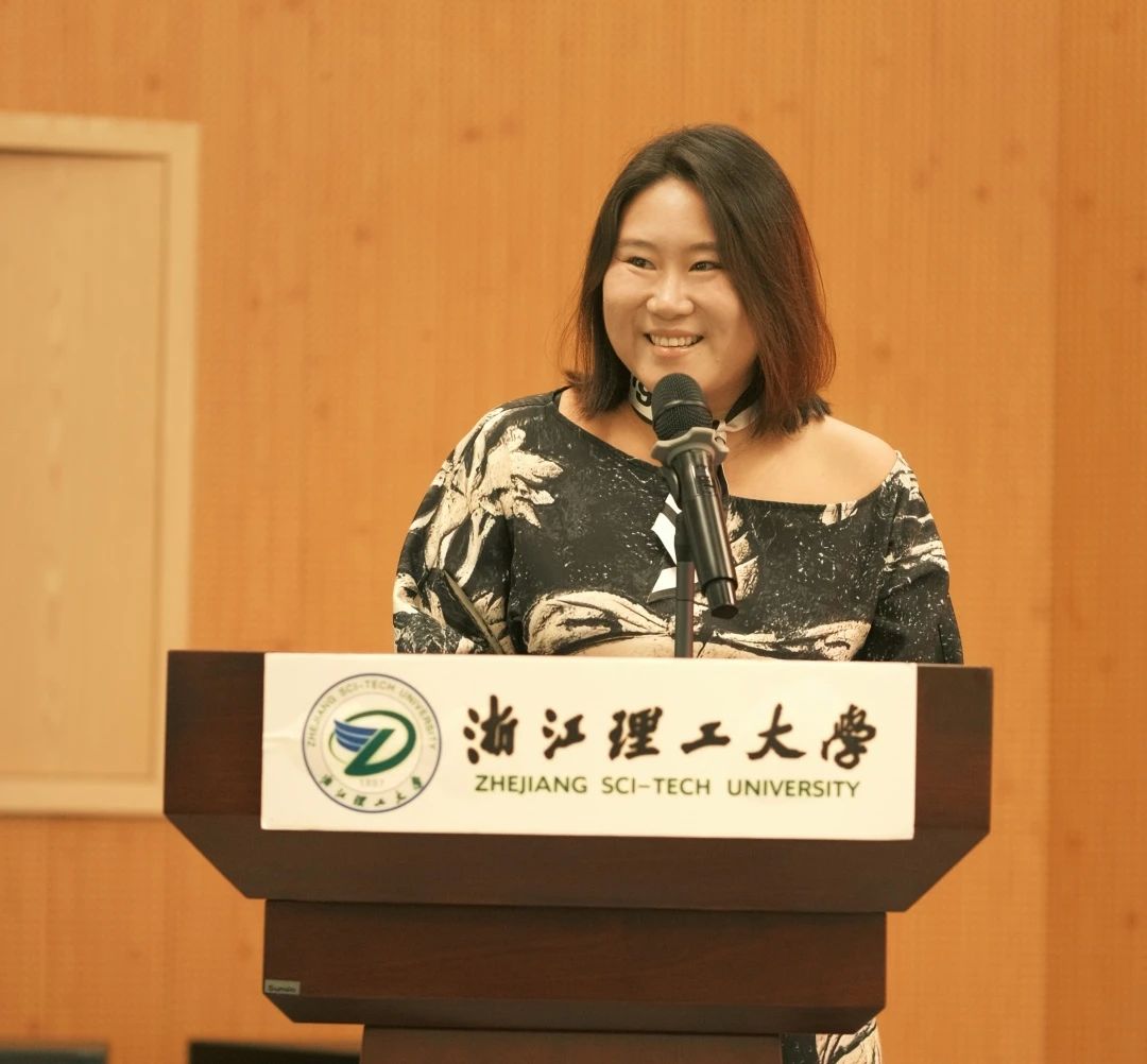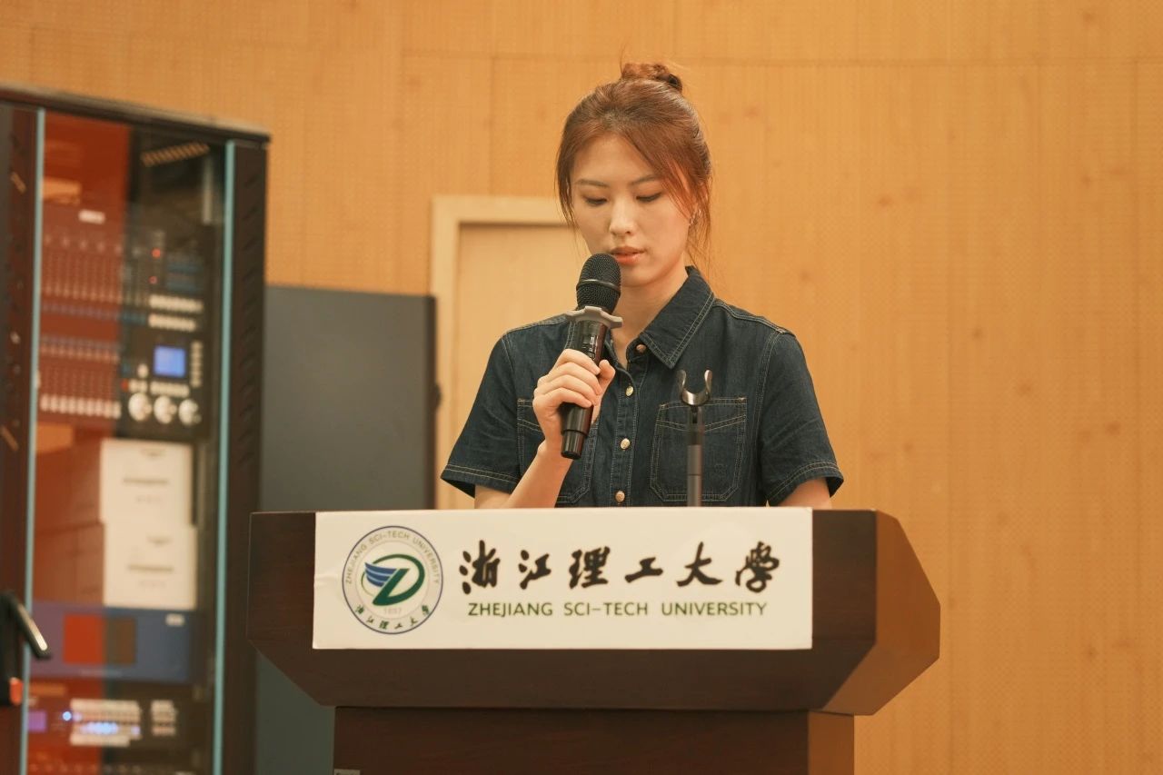 开学典礼后,林雨青作优秀校友成长报告会。她通过讲述一个个精彩生动的学习、工作案例,分享了自己在浙江理工大学、纽约时装技术学院及海外学习、深造和创业的经历,鼓励广大学弟学妹们要珍惜大学时光,勇于尝试和探索,培养跨文化交流能力,积极承担社会责任,努力成长成才,为中华民族伟大复兴贡献力量。