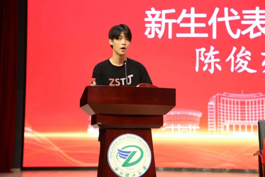 新生代表陈俊亦在发言中表达了对大学生活的期待与决心,他呼吁大家学会独立思考、勇于探索未知、共同成长进步,争做有朝气、有志气、有锐气的新时代青年。