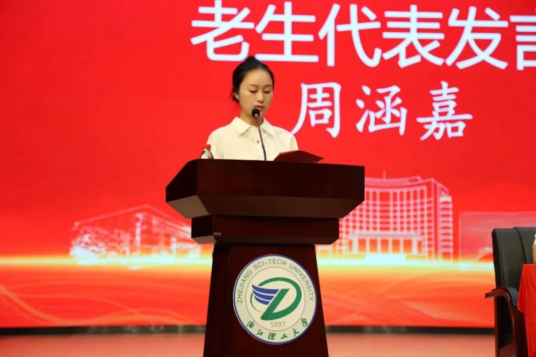 2024级数学类1班魏奕婷同学作为本科生新生代表发言,“玉汝于成,功不唐捐,”她以拼搏奋进的奥运会健儿为榜样,立志在校期间志存高远、奋楫争先,并祝福所有同学学有所成,在浙理不断成长、完成蜕变。