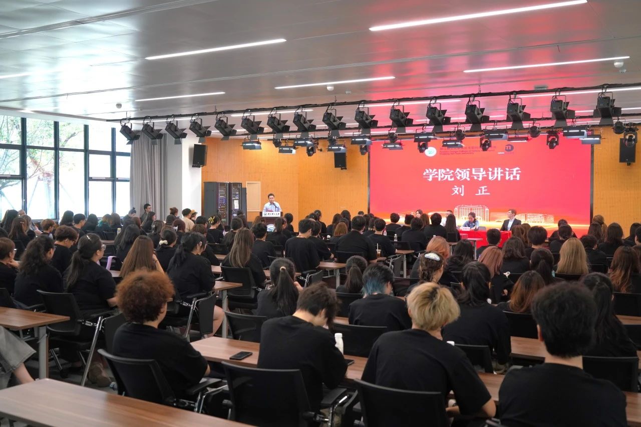 刘正代表全院师生对新生表示热烈欢迎。他介绍了学校的发展历程和学院的国际化办学特色,并寄语广大新生三点希望。一是心系祖国,激荡青春热血之志。自觉把个人理想同祖国的前途和民族的命运紧密联系在一起,锤炼过硬本领。二是勤学慎思,永葆求知进取之心。大学要调整角色身份、转变学习思维、提升学习能力,努力成长为德智体美劳全面发展的社会主义建设者和接班人。三是学贯中西,秉持创新开放之法。面向时尚科技前沿,学习先进知识和技术,助力新质生产力和全球时尚产业发展。