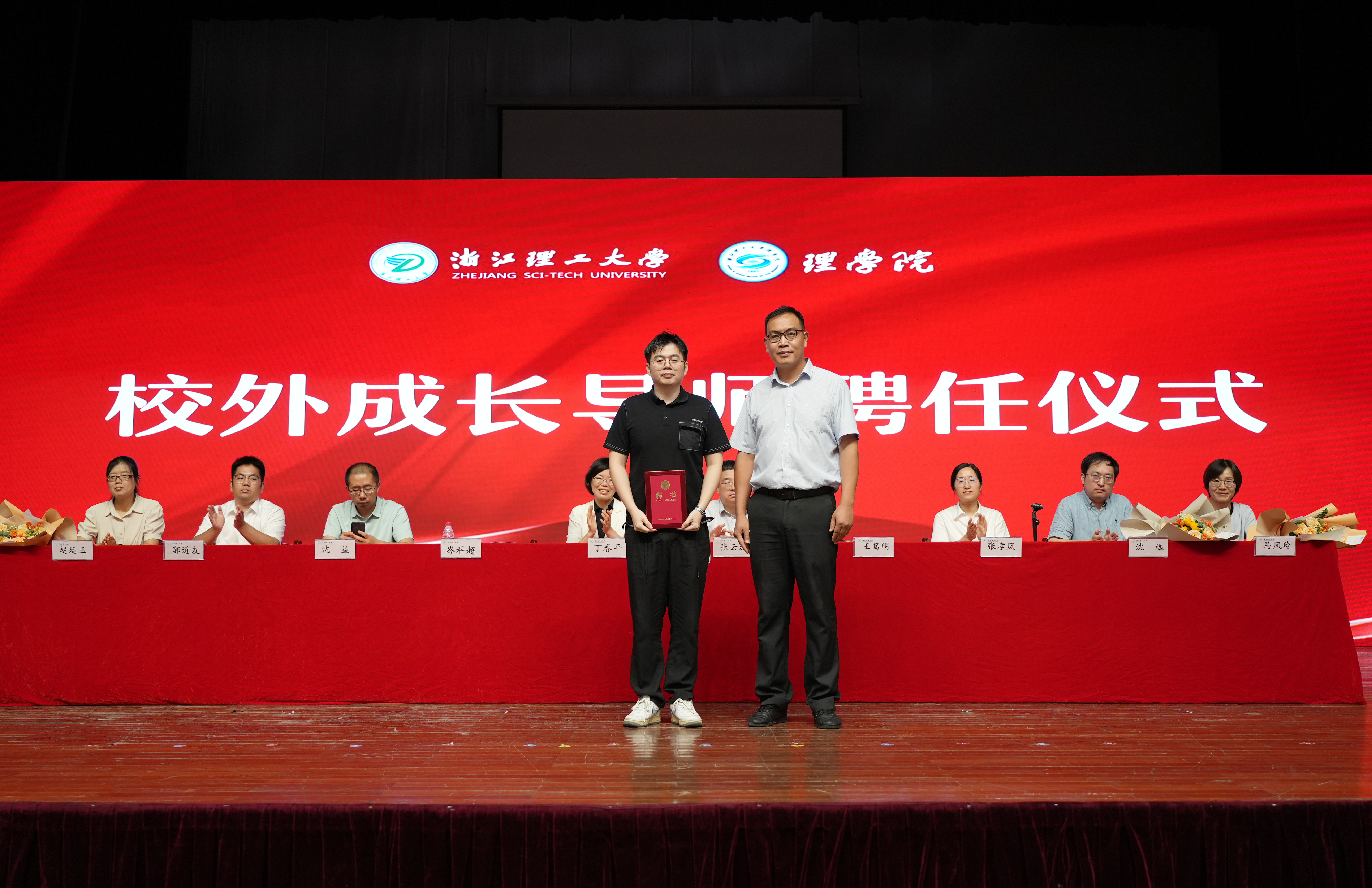 在本次典礼上,岑科超受聘为理学院校外成长导师并发言。副院长王笃明为其颁发聘书。岑科超结合个人成长与发展的经历,讲述了设立“科超助学金”的初衷,希望同学们求知求实、不断奋进,饮水思源、不忘初心。