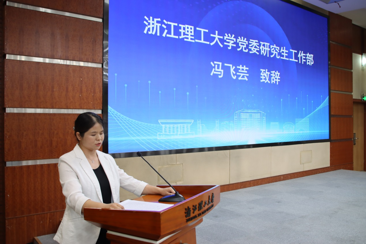 冯飞芸在论坛上作了致辞。她介绍浙江理工大学是一所有历史、有实力、有贡献、有愿景的高校。她对学校学术成果进行了总结,表示学校积极营造“周周有讲座,月月有论坛”的学术文化氛围,同时校院联动以中国研究生创新实践系列大赛作为科研实践育人平台,以赛促研,以赛促学,充分展现出了我校研究生不断向上的发展势态。她希望同学们在本次论坛上交流学术、开拓视野、激荡思想,碰撞出智慧的火花,为新时代浙江经济和社会发展贡献力量。