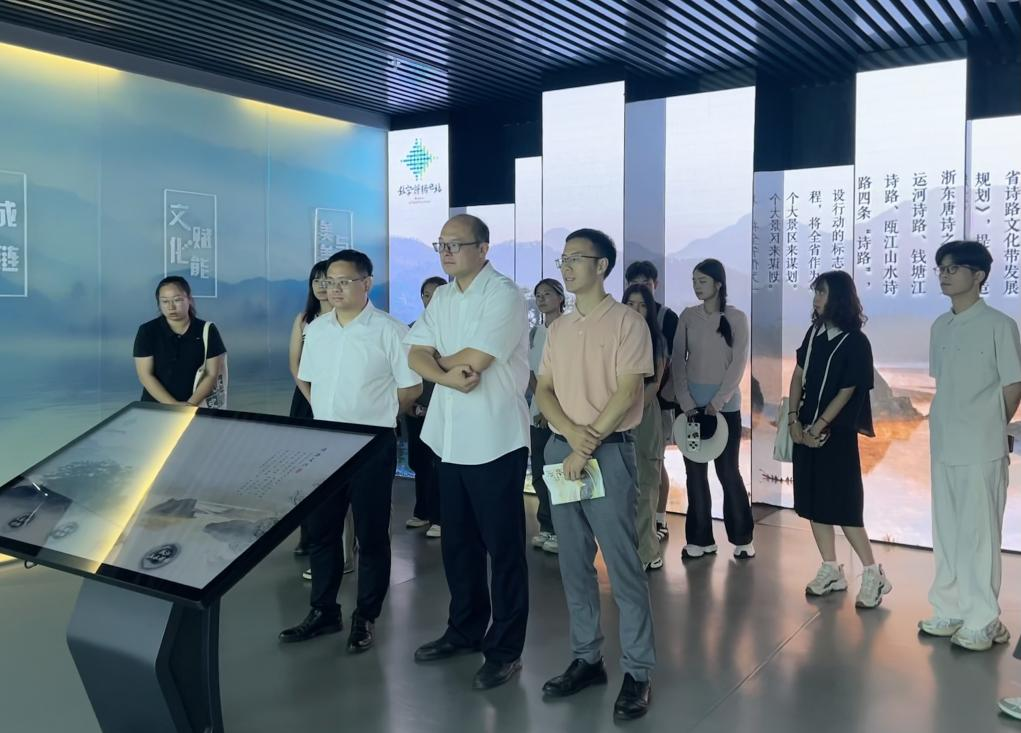 师生代表沉浸式体验浙江省社会科学普及基地——数字诗路e站,通过VR/AR、裸眼3D、CAVE空间等数字技术手段,以数字技术充分感受永嘉山水诗、谢灵运、非遗文化、古村文化、耕读文化、瓯窑文化等优秀文化资源,深度体验和了解了“千年古城”枫林宋韵文化。