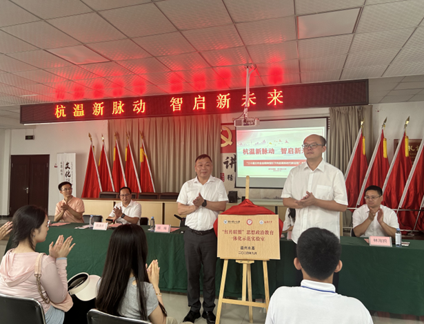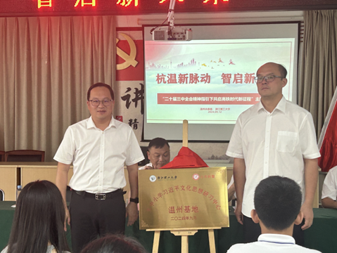胡琦、陈迪光为浙江理工大学“红传联盟”大中小学习近平文化思想研习中心(温州基地)揭牌。