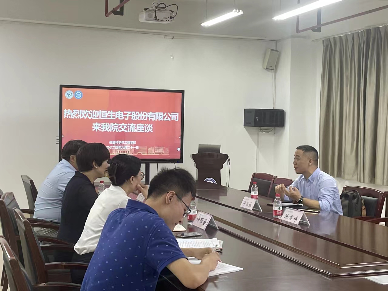 开营仪式结束后,双方进行了座谈交流。泮军伟介绍了恒生电子股份有限公司的发展方向以及行业需求,分析了近年来金融行业的走向,强调了电子信息技术对金融行业的影响。苏丽辉表示期待未来与恒生电子进一步深入开展合作,建立数字技术工程师培训基地,搭建更高水平的科研平台。双方还就学生企业实习实践、校企人才培养合作、科研竞赛成果转化等开展了深入交流。