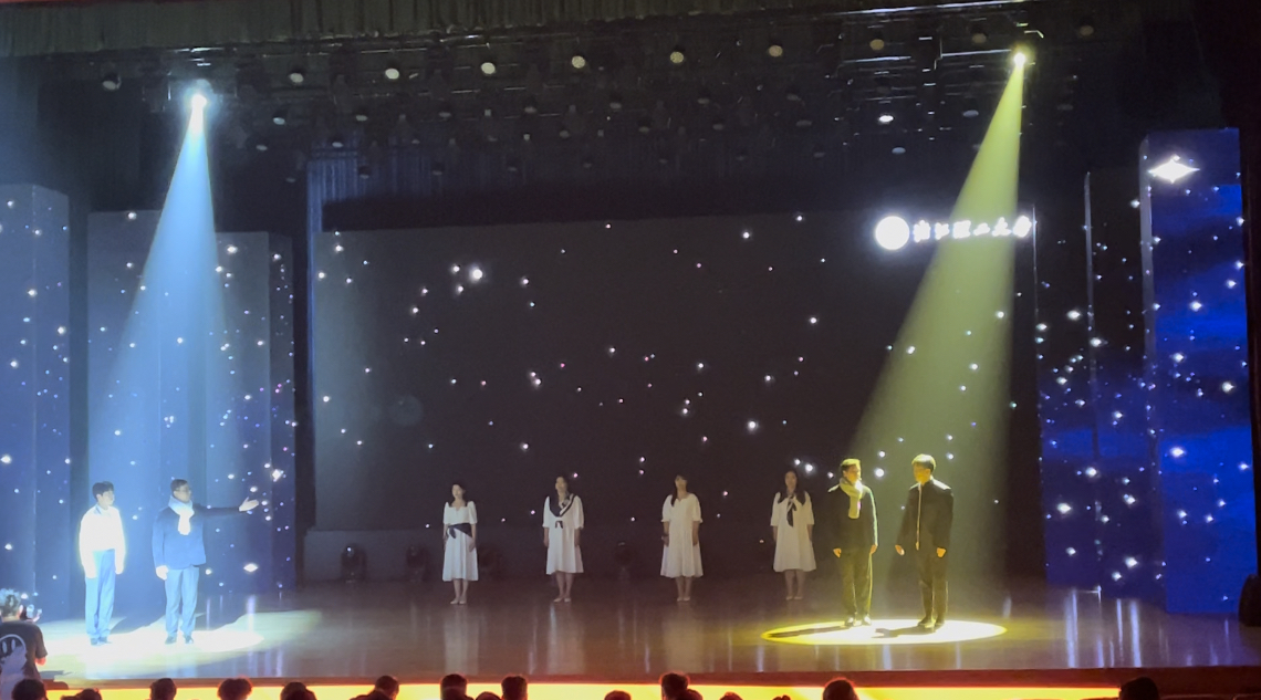 《丝路回响》是在“一带一路”倡议提出十周年背景下,以歌颂一代代丝绸人薪火相传、严谨治学的精神为内核,以著名丝绸教育家,第五、第六届全国政协委员、老校长朱新予先生生平故事为蓝本创作的朗诵作品。追光灯下,八位老师从三尺讲台走上文艺舞台,通过戏剧化的朗诵形式对老师与学生之间的跨时空对话进行巧妙编排,声情并茂地呈现了以朱老为代表的丝绸人接续复兴丝绸事业,倾注毕生心血只为“永葆丝国光辉”的崇高境界,彰显了老一辈教育工作者实事求是的治学态度和科学严谨的学术精神,展示了新时代青年一代坚持“文化自信”,坚守文化根脉的使命担当,极具感染力的表演获得现场阵阵喝彩。