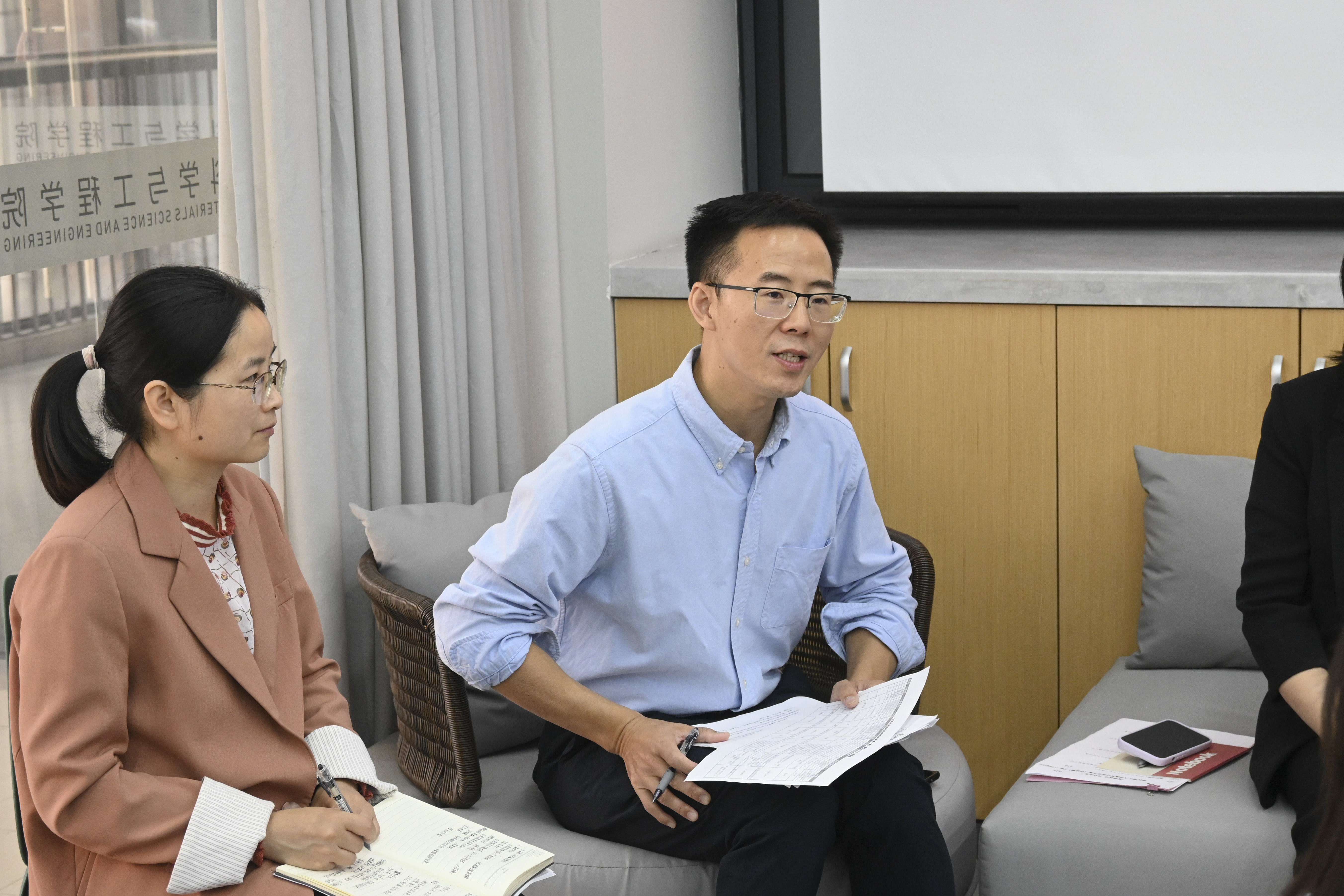 为进一步深化“三全育人”工作,搭建开放的交流平台,让学生们有机会与导师进行面对面的深入交流,加强师生之间的联系沟通,促进学术思想的碰撞,激发创新思维,推进学院人才培养工作,提升本科生思想政治教育成效,10月11日,材料科学与工程学院举办“启智润心,赋能成‘材’”——“我与导师面对面”启动仪式暨首期主题沙龙。学院党委书记仰滢、学院院长张先明作为首期面对面嘉宾应邀出席。学院党委副书记周照东,学生工作办公室主任张姗姗,高分子材料系教工党支部书记、高分子材料系副主任陈世昌,教学科研办公室教学秘书曹晨云及十余名大一、大二学生代表参加活动。活动由学院党委副书记周照东主持。
