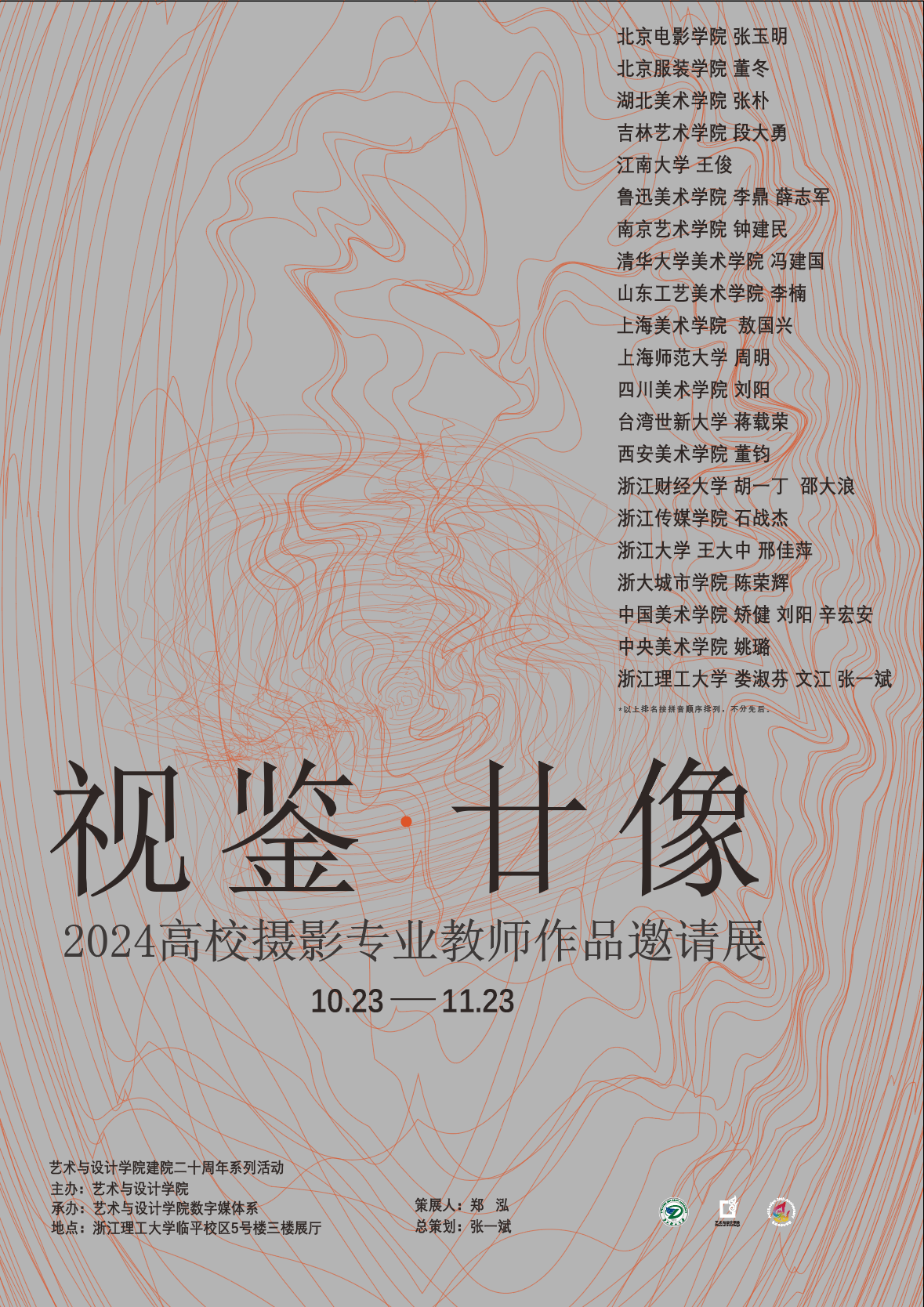 2024年是浙江理工大学艺术与设计学院建院20周年,为全面回顾学院20年成长历史,弘扬办学精神,展现学院成就,汇聚办学力量,进一步激发全院师生和校友爱院、建院的热情,为学院人才培养、学科建设和高质量发展赢得多方位支持,特举办视鉴·廿像“2024高校摄影专业教师作品邀请展”。这个展览是我们主题为“视鉴·廿像”的艺术与设计学院建院20周年系列活动中重要的一环。本次展览由浙江理工大学艺术与设计学院主办,数字媒体艺术系承办。