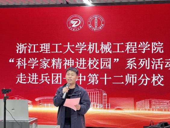10月29日下午,浙江理工大学机械工程学院“科学家精神进校园”系列活动走进兵团一中第十二师分校,通过网络在线的形式为师生们带去了一场别开生面的科学家精神宣讲活动。兵团一中第十二师分校团委书记马维武、24级辅导员程宇龙、优秀学生代表参加,活动由23级辅导员李家乐主持。