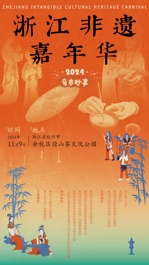 11月9日,一场别开生面的非遗盛宴——2024「奇市妙享」浙江非遗嘉年华活动在杭州径山茶文化公园盛情启幕。本次活动由浙江省文化广电和旅游厅、杭州市余杭区人民政府主办,“中国传统制茶技艺及其相关习俗”浙江省保护发展联盟、杭州市余杭区径山茶发展领导小组办公室、杭州市余杭区文化和广电旅游体育局、杭州余杭文化旅游投资集团有限公司、杭州市余杭区茶文化研究会承办,杭州市余杭区径山镇人民政府、杭州市余杭区瓶窑镇人民政府、飞猪旅行、浙江理工大学服装学院支持赋能。