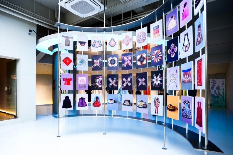 在此次揭幕活动现场,还举办了以「云裳霓霞·革新时尚」为主题的艺术展览。聚焦中华传统云肩与现代合成革,通过设计师的巧思妙想,呈现出传统工艺与革新材质的完美融合。展览不仅展现了云肩的文化之美,也通过现代技术让它走向更广阔的时尚未来。一件件展品都在讲述传统文化如何通过现代语言焕发新的生命力,每一个设计细节都流露出设计师对东方美学与未来潮流的深刻洞见。