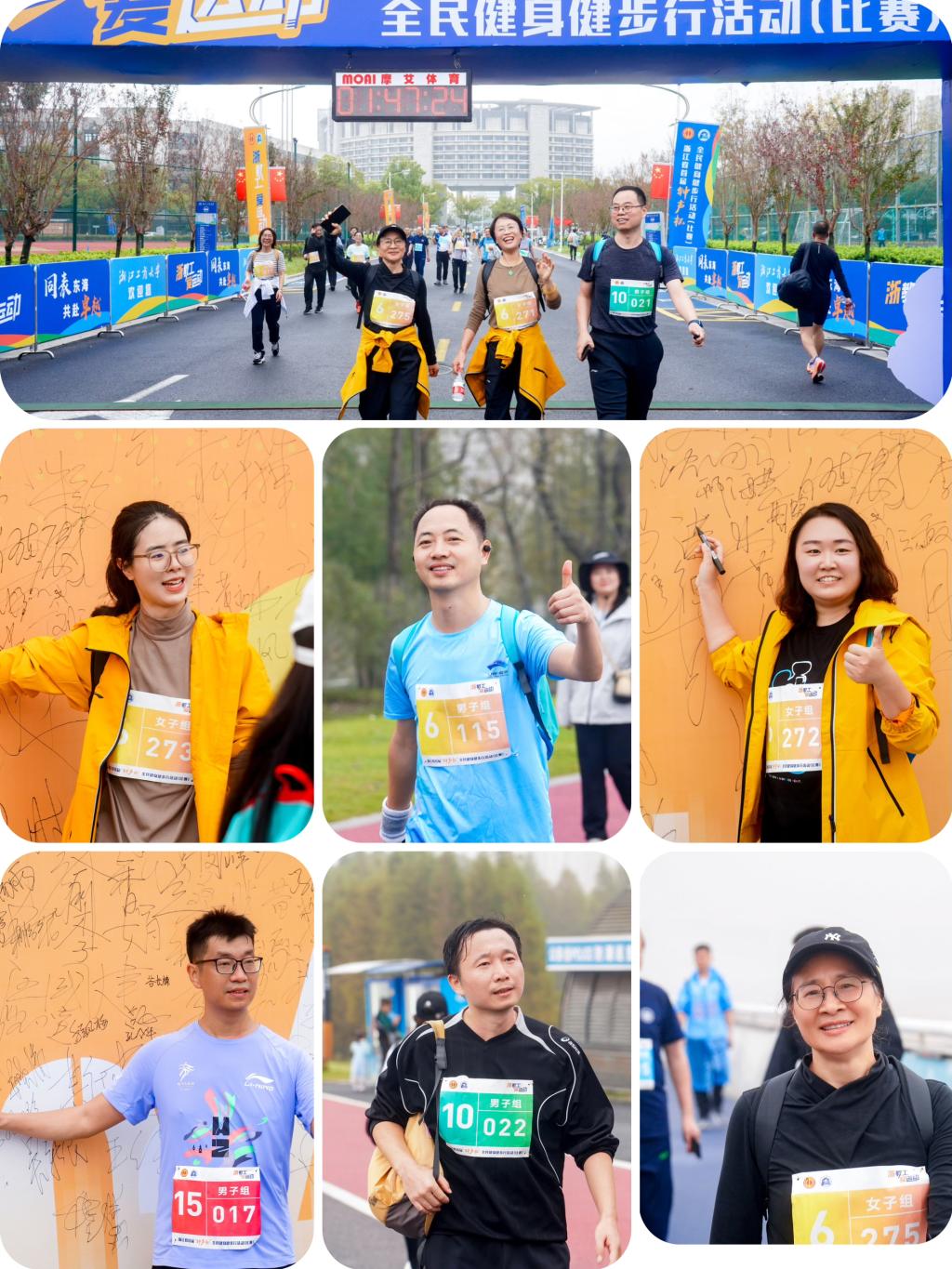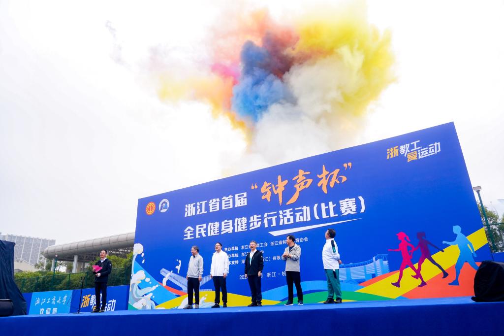 比赛日清晨,来自32所省内高校(单位)的800余名健步爱好者在雨幕中集结完毕。随着浙江省教育工会主席、省钟声体协主席王玉庆的一声令下,比赛正式开启。尽管天空细雨蒙蒙,寒风阵阵,但运动健儿们不畏风雨,疾步前行,一路热情似火!