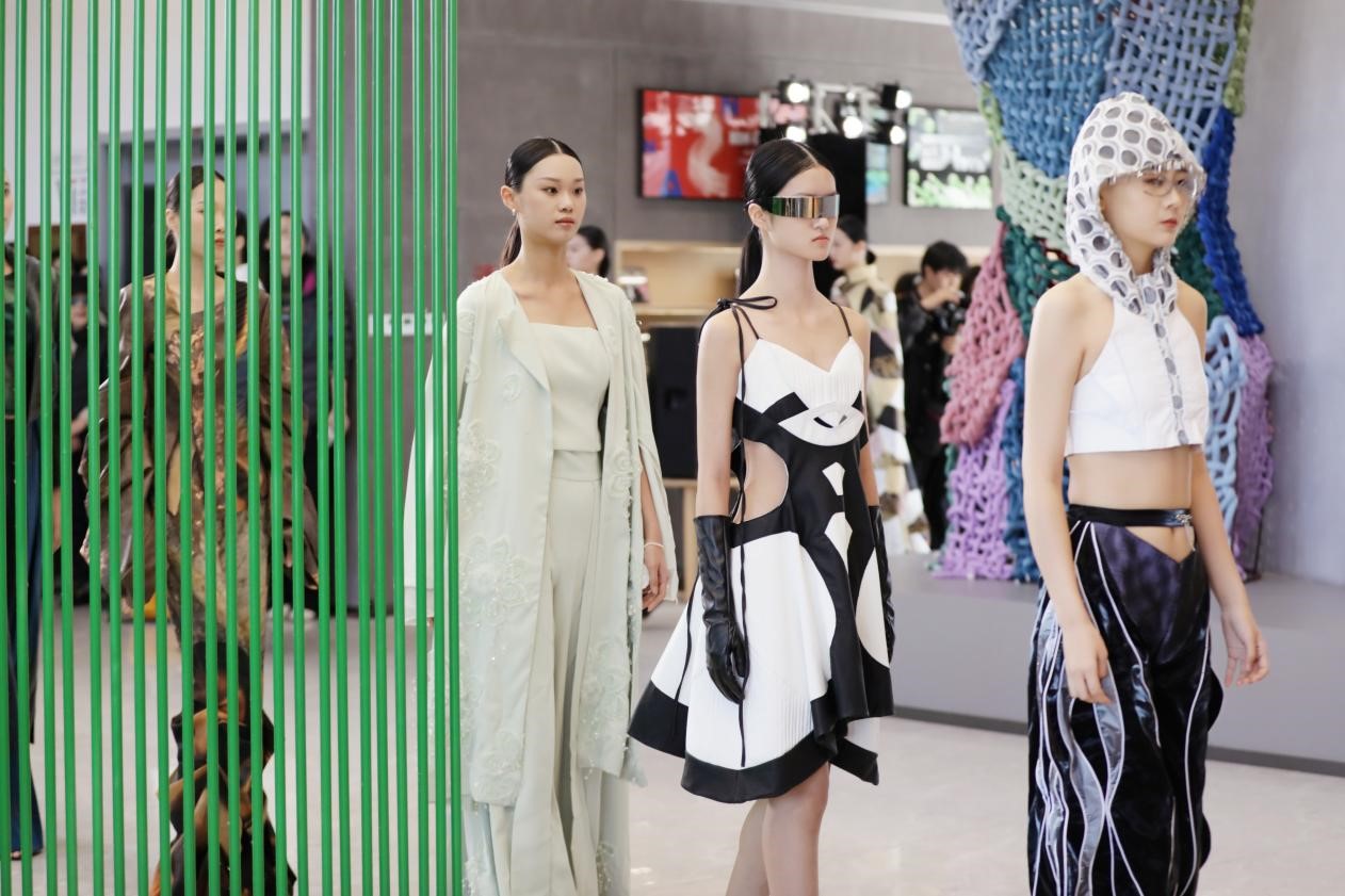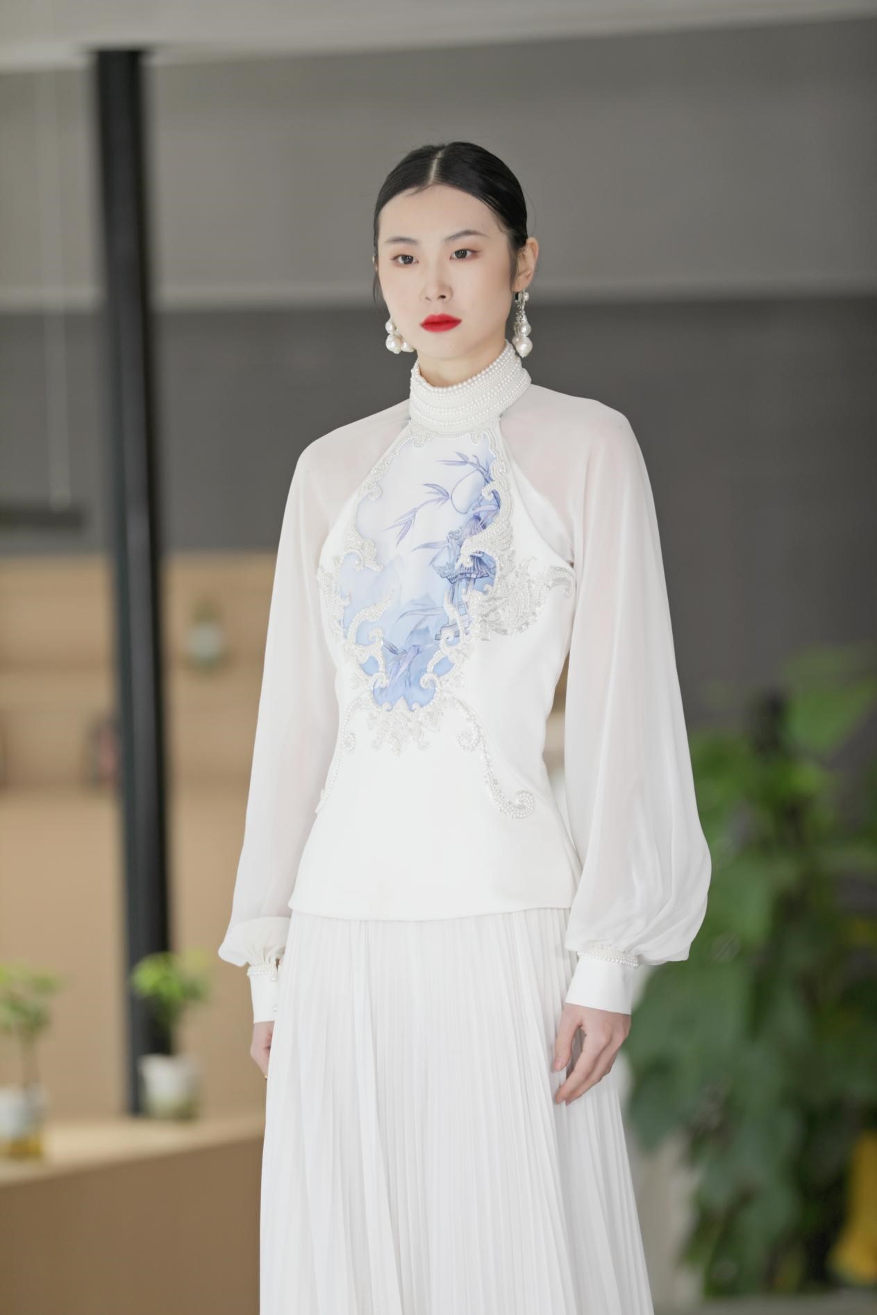 来自服装表演专业的专业模特们身着提炼融合了中式美学的非遗高定作品与服装学院崔荣荣教授团队的设计创作,在学校的书香空间中为全院师生演绎出一场具有东方雅韵浪漫的时尚大秀,共同奏响了中华传统文化的乐章。
