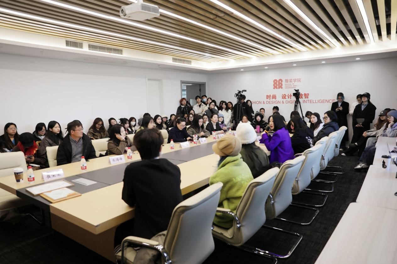 在欣赏了精彩的非遗秀场后,服装师生与熊英设计团队来到浙江理工大学7号楼555会议室,共同开展一场设计师间的深度交流。浙江理工大学服装学院院长崔荣荣、副院长冯荟、各专业专任教师、本科生及研究生参加了沙龙活动。沙龙活动由服装学院副院长冯荟教授主持。