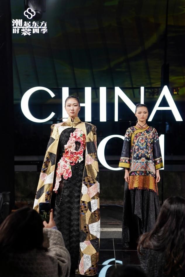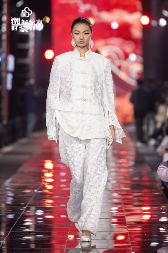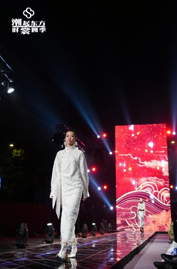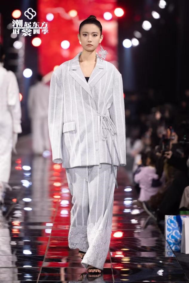 开幕式的重头戏——“潮起东方·时裳四季”原创时装秀震撼上演。来自浙江理工大学服装学院表演(时装表演艺术)专业的模特们身着融合了中式元素与现代时尚的精美时装,生动演绎了时尚与传统的完美融合。活动服装均来自采荷街道服装专业市场主理人原创服饰品牌与浙江理工大学服装学院崔荣荣教授团队国风创新作品。这些设计作品不仅展现了设计师们的匠心独运,更体现了浙江时尚产业在传承中华优秀传统文化、践行国际时尚潮流方面的积极探索与创新实践。从细腻的刺绣到独特的剪裁,从传统的色彩运用到现代的材质搭配,每一件作品都彰显了国潮与时尚流行的深厚底蕴,演绎了现代生活方式的创意活力,让观众们沉浸在一场视觉盛宴之中,充分感受到了中国风格的独特魅力。
