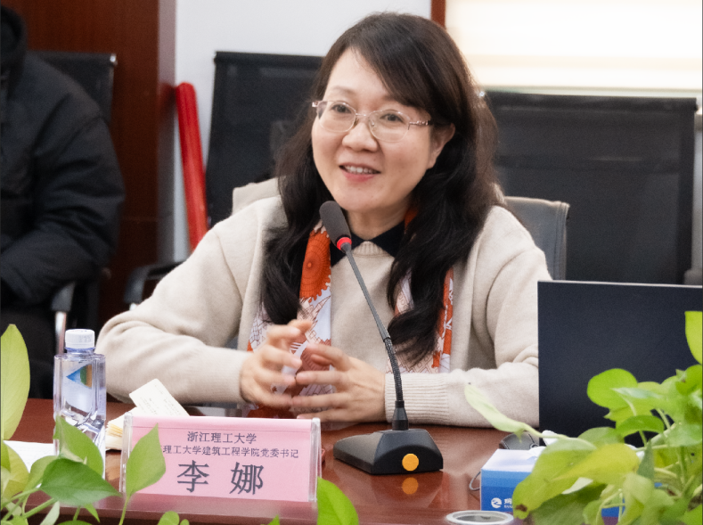 浙江理工大学建筑工程学院党委书记李娜对绍兴永通印花有限公司支持我院联学共建活动等工作表示衷心感谢,并强调学院高度重视与纺织印染名企建立基层党建“共同体”。她指出,本着“党建统领、资源整合、优势互补、共建共享”的原则,希望通过此次联学共建活动为建筑学科与纺织行业的跨界合作奠定坚实的基础,力争“1+1>2”的联动效应。同时,李娜书记在讲话中指出浙江理工大学已确立了向双一流大学目标奋进的战略规划,并特别强调了纺织学科与其他学科跨学科合作的重要性,以及纺织工业建筑规划与建设碳减排工作的重要性,同时指出我校与企业界正共同致力于绿色低碳领域的平台建设。她鼓励大家拓宽就业思路,突破传统建筑行业的局限,积极探索新的合作领域和发展空间。最后,李娜书记表示期待双方在人才培养、产教融合等方面实现深度合作,共同开创共赢共进的新局面。