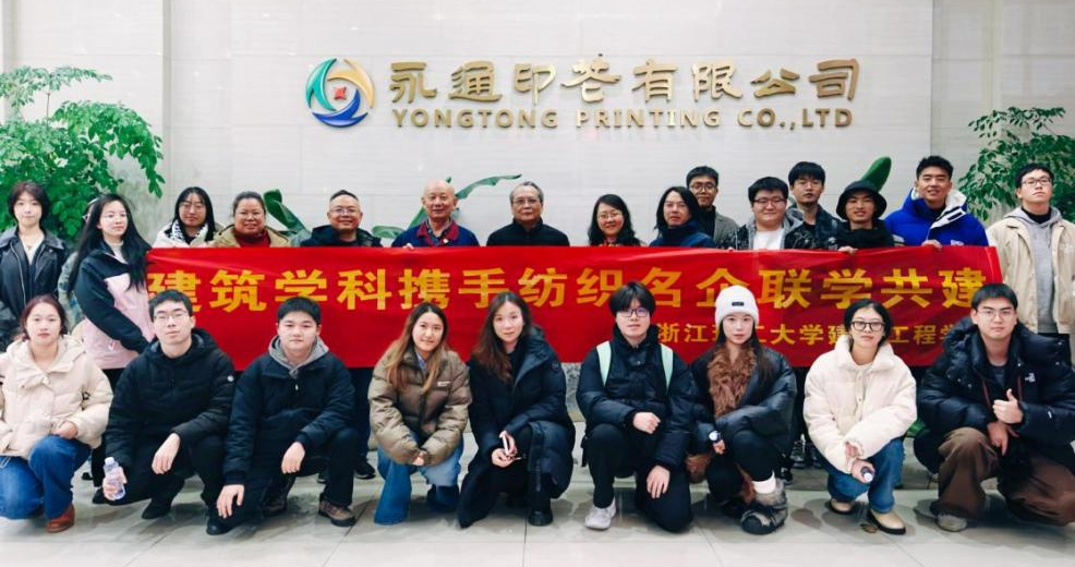 为深入推进产教融合协同发展,推动校企党建“共同体”建设,浙江理工大学建筑工程学院走进全国纺织印染企业30强之一的绍兴永通印花有限公司,开展“建筑学科携手纺织名企联学共建活动”。近日,浙江理工大学建筑工程学院党委书记李娜、浙江省生态文明研究院副院长薛福冰、浙江理工大学建筑工程学院党委委员兼建筑学教工党支部副书记周红燕、副系主任文强、副教授陈潇玮携建筑学与风景园林方向17位硕士生奔赴位于“国际纺织之都”的柯桥,与绍兴永通印花有限公司执行董事兼总经理章建木、党总支书记兼副总经理冯晨、副总经理毛学泽进行了深入交流。