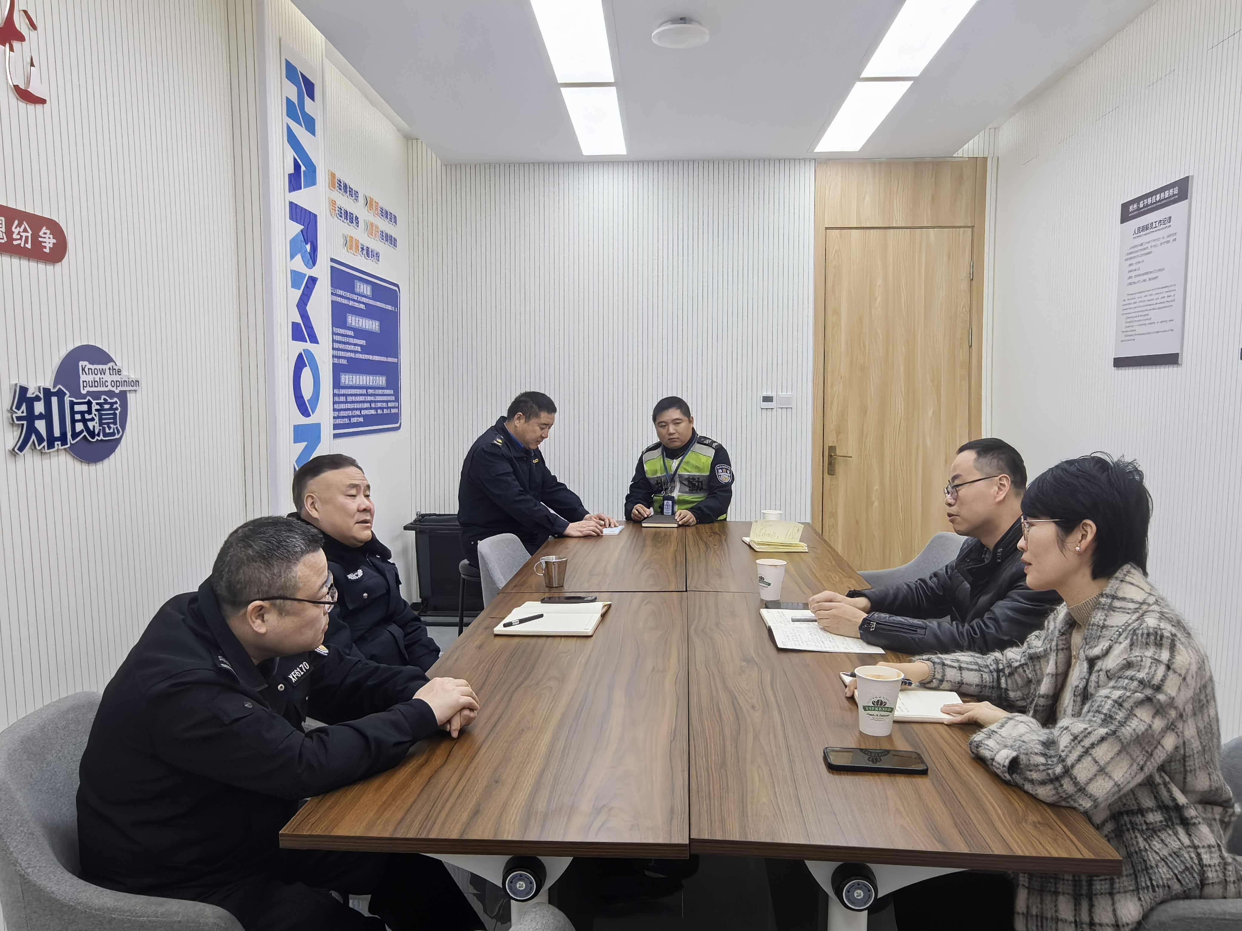 12月26日上午,临平校区管委会办公室主任方平、副主任包新春一行来到位于临平校区东南门附近的联勤警务站开展专题走访调研。东湖派出所民警许海波携中心骨干热情接待临管办一行,双方进行深入座谈。