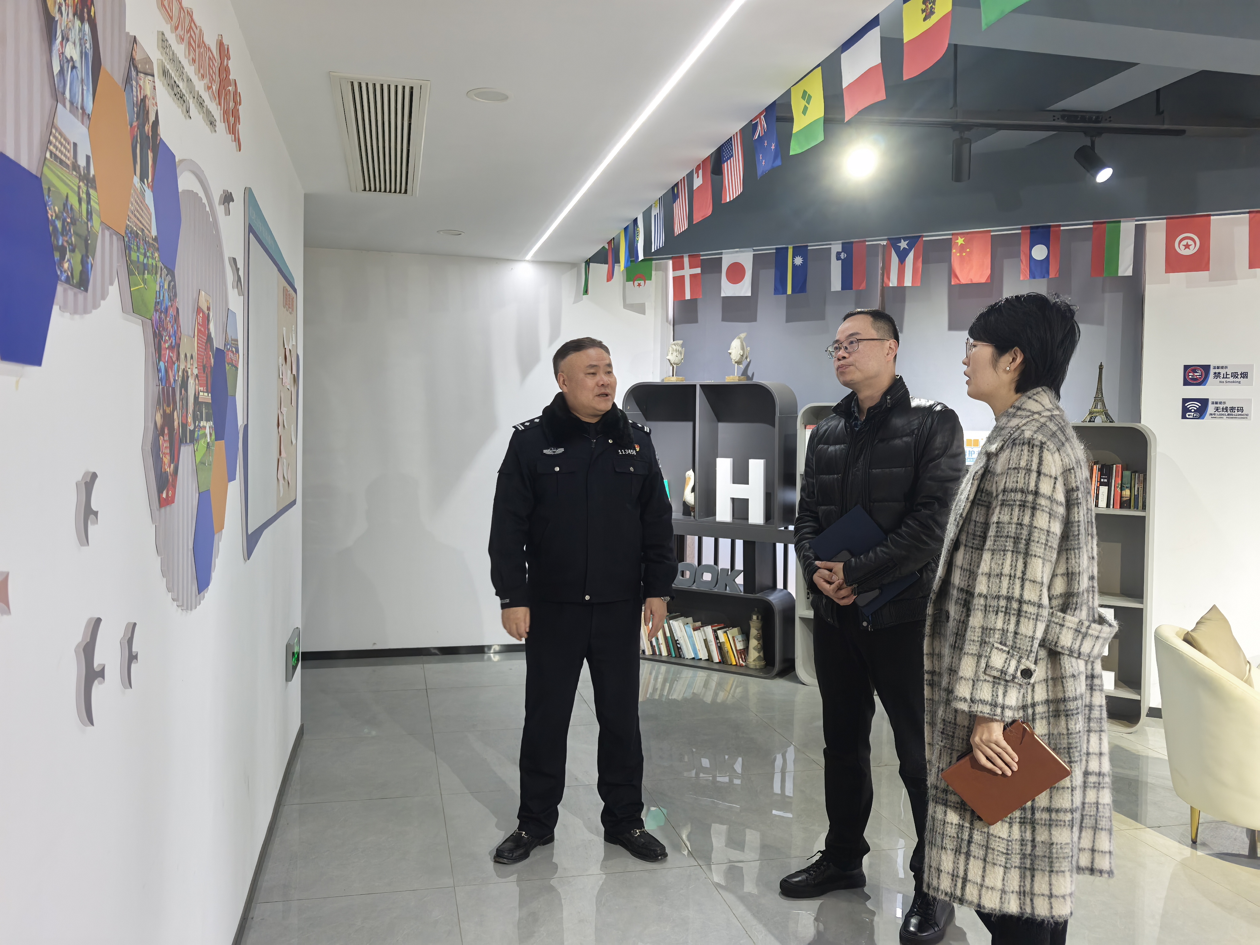 调研期间,许海波向走访人员现场介绍联勤警务站人员组成、服务功能及运行机制等情况,展示硬件类保障设施与设备。联勤警务站内有派出所、城管、交警、开发区市场监管所等部门驻点人员45人,为临平校区及周边7个社区共4.9万余人提供综合服务、交通序化、平安维稳、移民事务服务等功能。