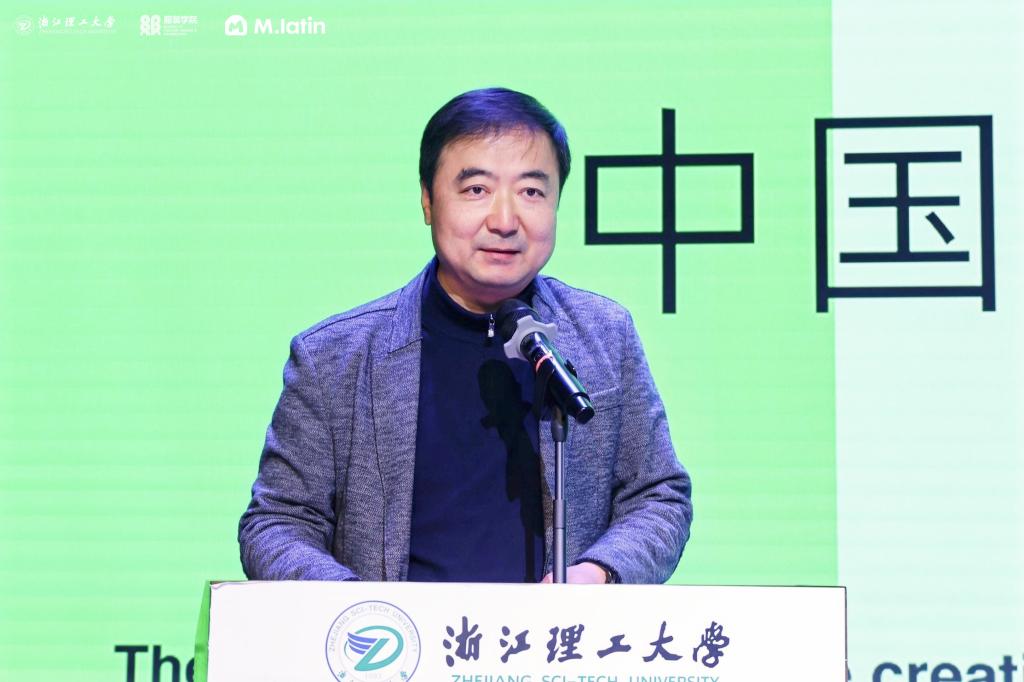 浙江理工大学服装学院院长崔荣荣代表承办方致辞,崔院长介绍了浙江理工大学的人才培养理念,他表示,本次大赛以“想象的边界”为主题,旨在激发大学生的创新精神,推动中华服饰文化的创新与传承。来自全国各大高校的设计师们,以自己独特的视角和创意,对童装创意设计以及儿童的日常需求进行了深刻的思考和大胆的探索。选手们的作品展现了新生代设计师们的想象力、创意力和实践能力。