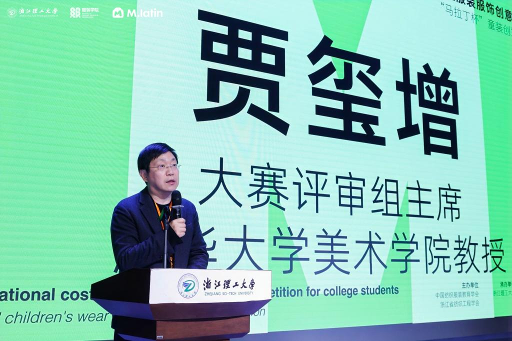 大赛评审组主席,清华大学学术学院贾玺增教授对本届大赛做了赛事点评并宣读了获奖名单。贾教授的点评深刻总结了本届大赛的亮点和特色,对选手们的创意作品进行分析,并从设计出发,给全国的参赛选手提供了宝贵的经验分享和设计指导,也为参赛选手未来的创作方向提供了很好的建议,贾玺增教授建议参赛选手要多关注中国的传统服饰历史、吉祥文化以及日常生活,这些都是设计重要的灵感来源。