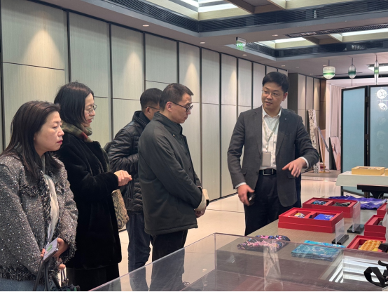 凯喜雅控股有限公司副总经理黄然对崔荣荣一行的到来表示热烈欢迎,展示了企业为G20杭州峰会、中国进博会、杭州亚运会等一系列盛会设计制作的丝绸国礼。凯喜雅国家级工业设计中心负责人李鹏介绍了凯喜雅集团通过科技革新,研发了AI数字化织造丝绸、Innosilk®可机洗真丝、植物染真丝、挺括丝绸等多种颠覆传统的新丝绸面料。
