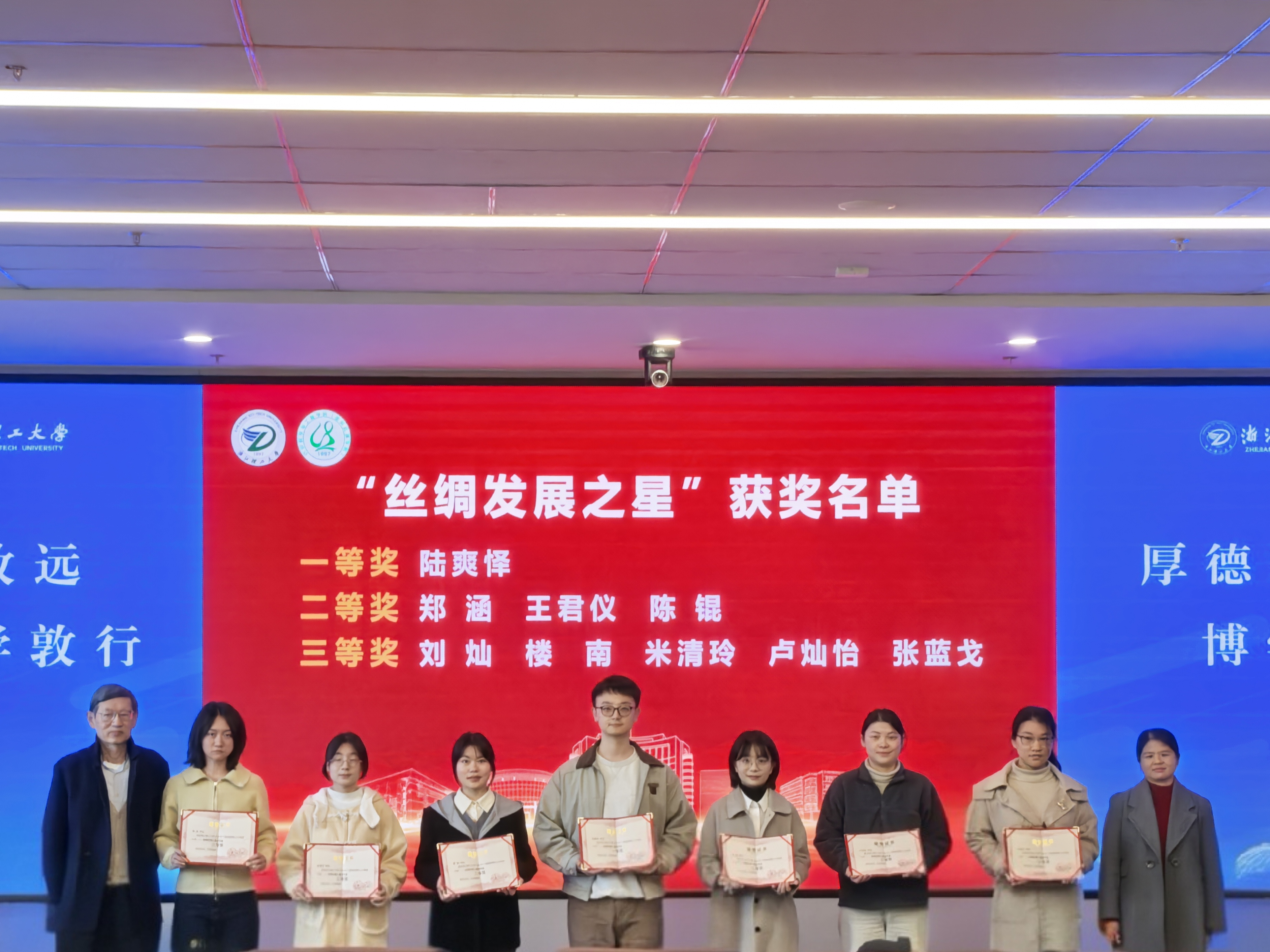 据了解,经过前期近一个月的筹备与评选,本次共有9名学生荣获“丝绸发展之星”奖学金,25名学生获得“丝绸专项”奖学金。与会领导、嘉宾分别为获奖学生颁发荣誉证书。