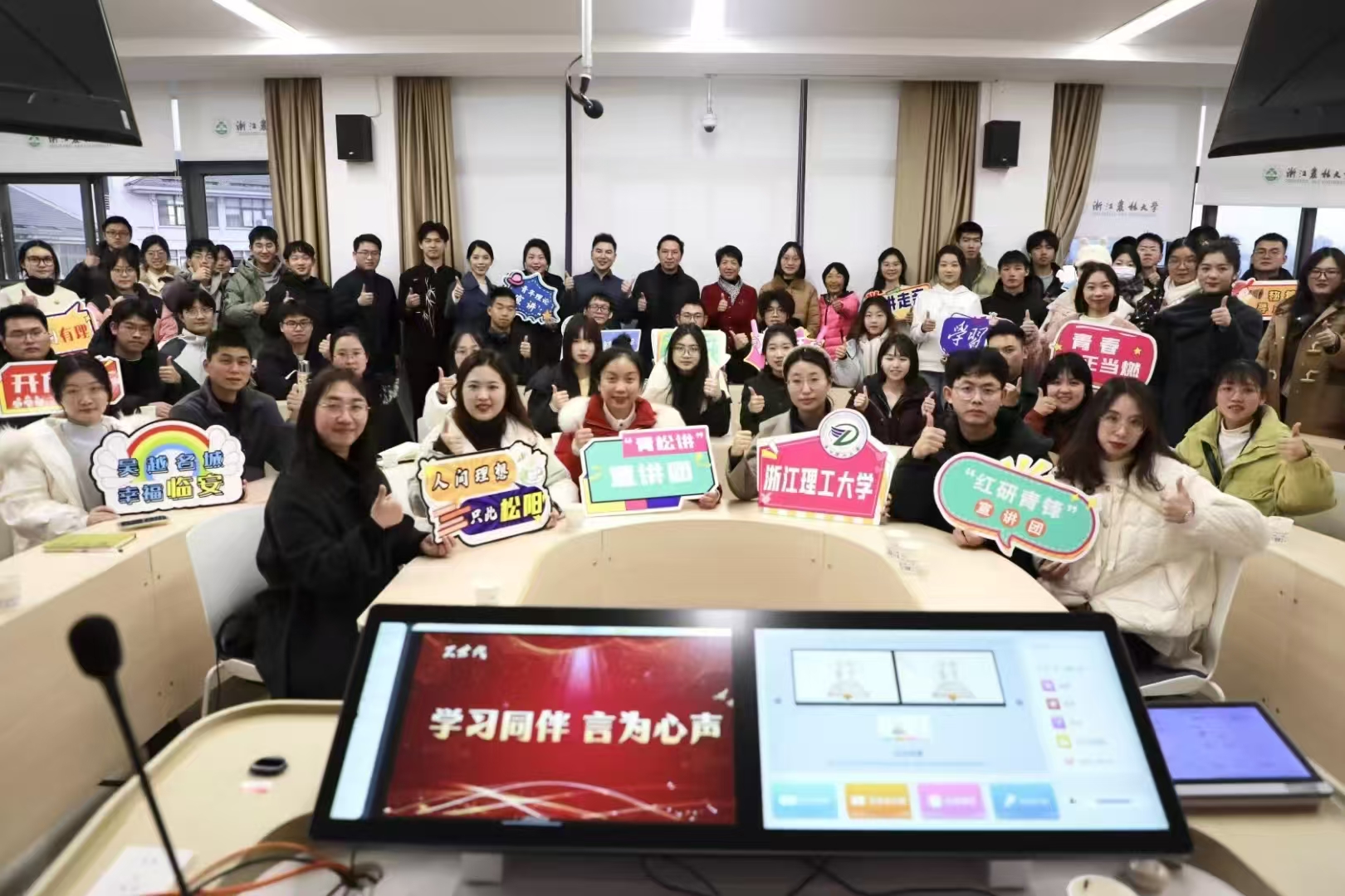 逐梦踏浪正当时,之江青年话新程。1月7日-8日,“红研青锋”浙理硕博宣讲团受邀前往浙江农林大学开展宣讲走亲交流活动,旨在促进不同地区与院校宣讲团互学互鉴,提升理论水平与宣讲技能,加强相关领域合作与经验分享。丽水松阳“青松讲”宣讲团、临安“天目新农人”宣讲团、浙江农林大学“学习同伴”宣讲团和“红研青锋”浙理硕博宣讲团成员代表参与本次活动。