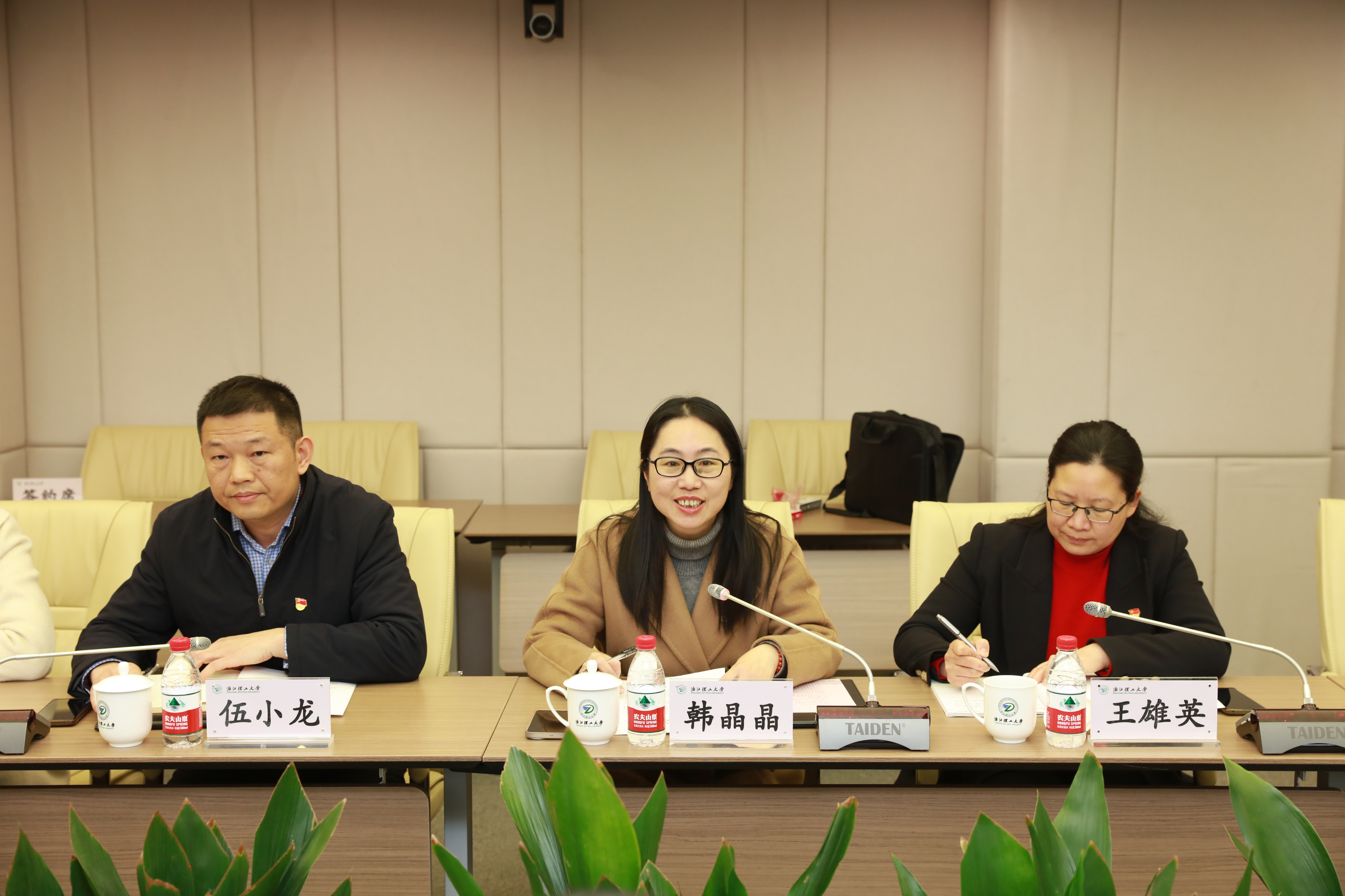 韩晶晶致欢迎辞,她对王家铃书记一行的到来表示热烈欢迎,介绍了学校的办学历史、学科优势和发展前景。她表示学校一直将师生健康放在工作首位,期待通过医校党建联建的方式,有效推动双方在健康校园建设、医疗服务、科研协作等领域的合作,提升学校医疗服务保障能力和水平,着力打造“组织共建、资源共享、服务协同”的党建联合示范品牌。