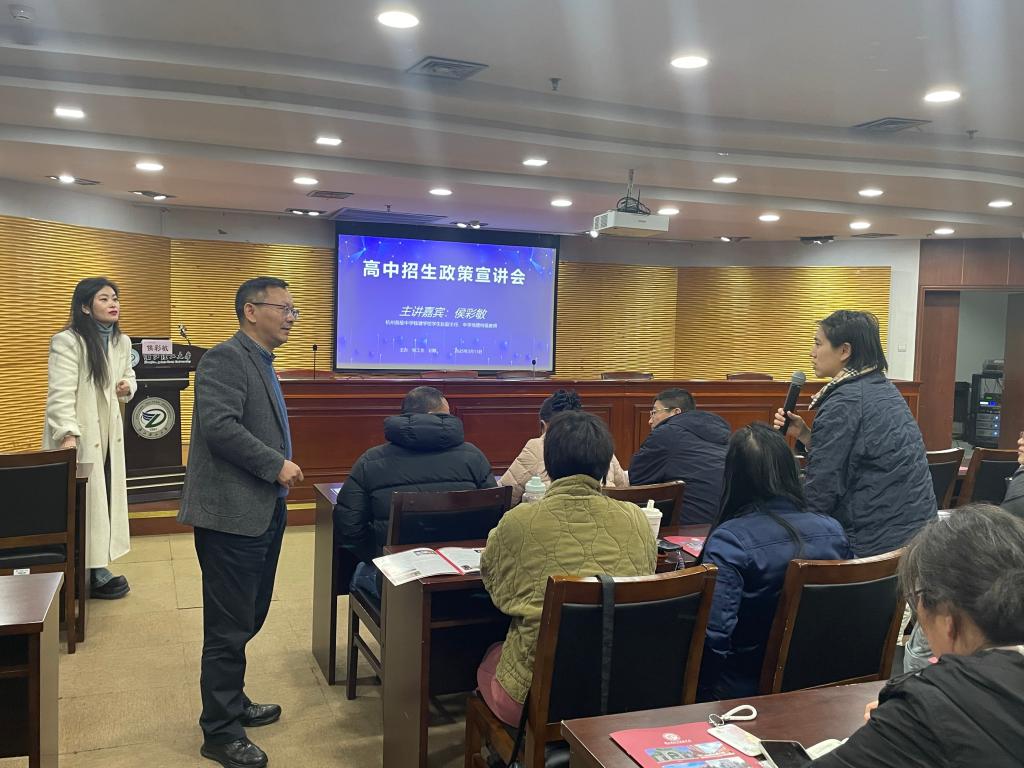 为积极落实“我为群众办实事”,帮助广大教职工和子女全面了解2025年杭州市有关中考体育、分配生、志愿填报等招生政策,3月13日下午,在行政楼一楼报告厅,高中招生政策宣讲咨询会如期举行。活动邀请到杭州高级中学钱塘学校学生处副主任、中学地理特级教师侯彩敏,杭州高级中学钱塘学校工会副主席、中学语文高级教师刘保华两位担任主讲嘉宾。校工会、妇联常务副主席龚素瓅主持活动。