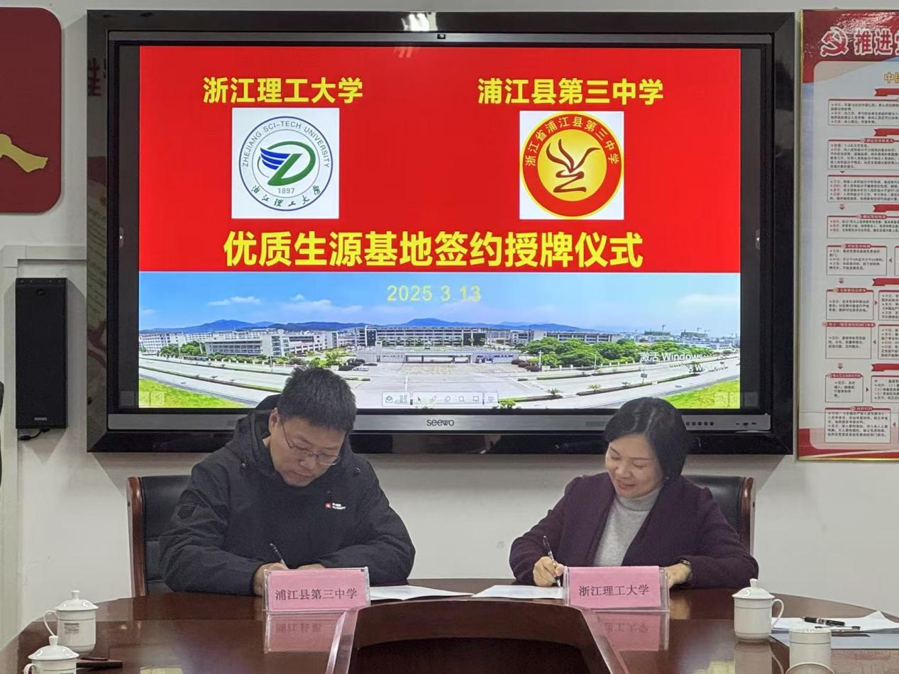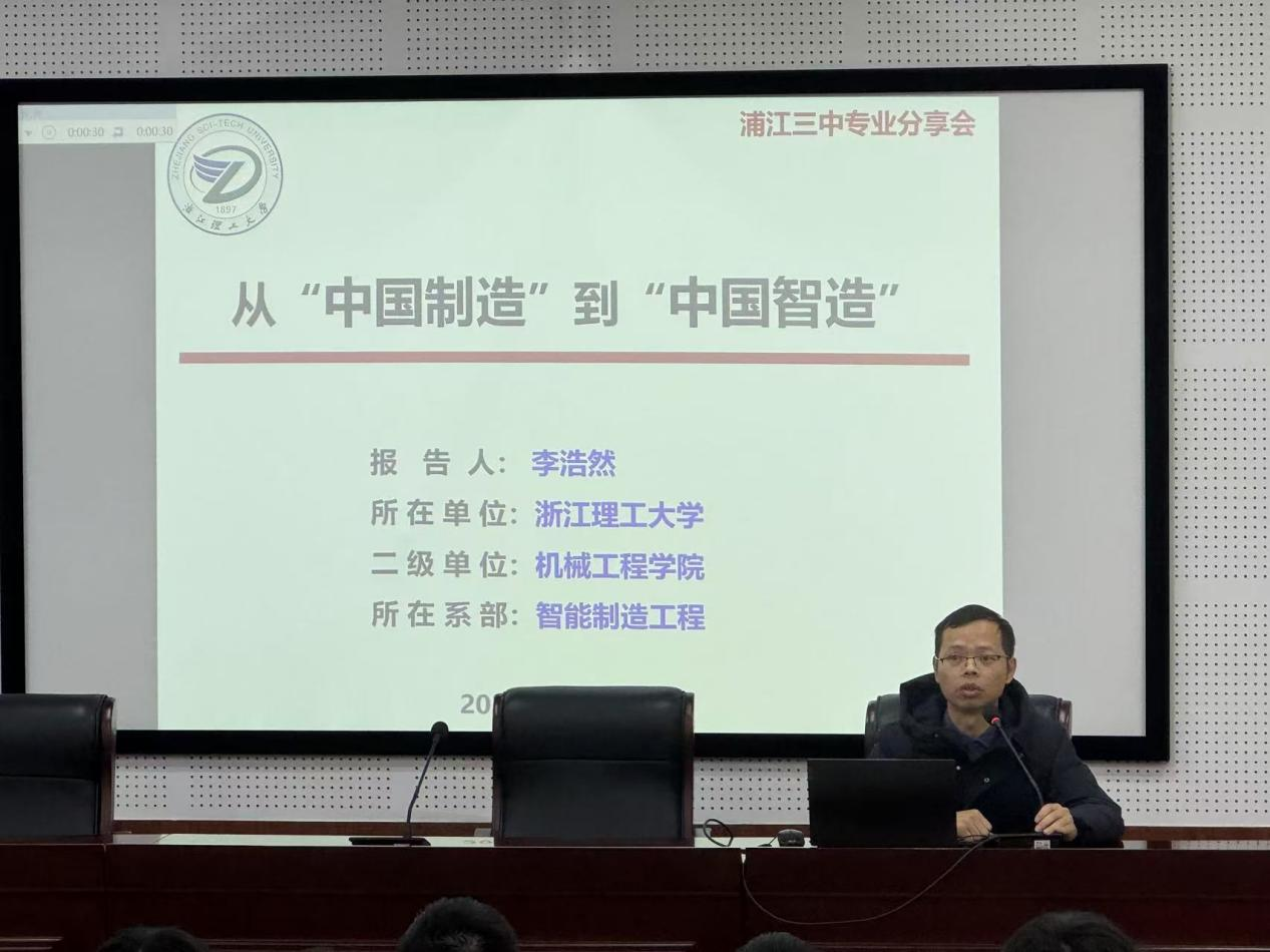 为深化高校与中学协同育人机制,助力创新人才培养,3月13日,机械工程学院走进浦江县第三中学,开展招生宣传系列活动。本次活动以“智造未来·共育英才”为主题,通过优质生源基地签约授牌、智能制造科普讲座、校院培养模式解读等形式,搭建起高校与中学深度合作的桥梁,为浦江学子带来前沿科技视野与升学规划指导。